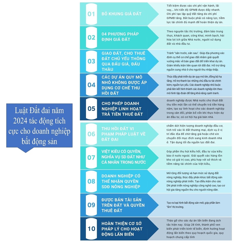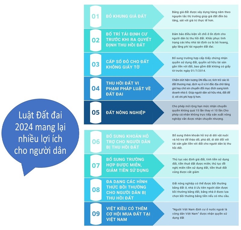 logo Luật Đất đai 2024 đã có hiệu lực từ 1/8/2024, qua đó đã gỡ nhiều “nút thắt” về đất đai, tạo điều kiện thuận lợi phát huy giá trị sử dụng đất và mang lại nhiều lợi ích cho doanh nghiệp, người dân góp phần thúc đẩy phát triển kinh tế - xã hội của đất nước,…