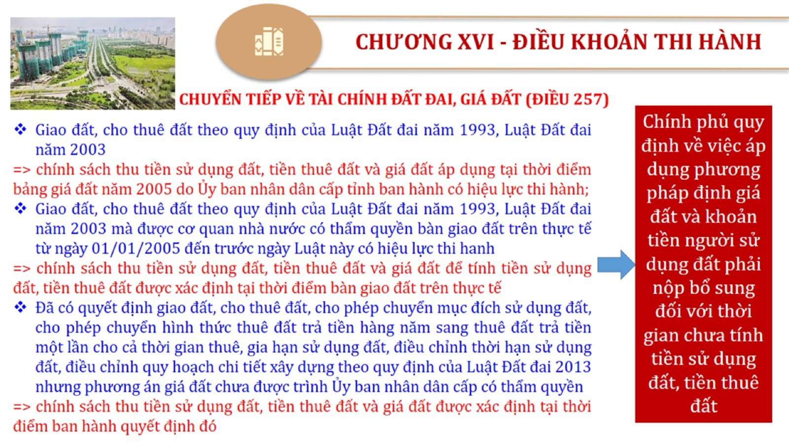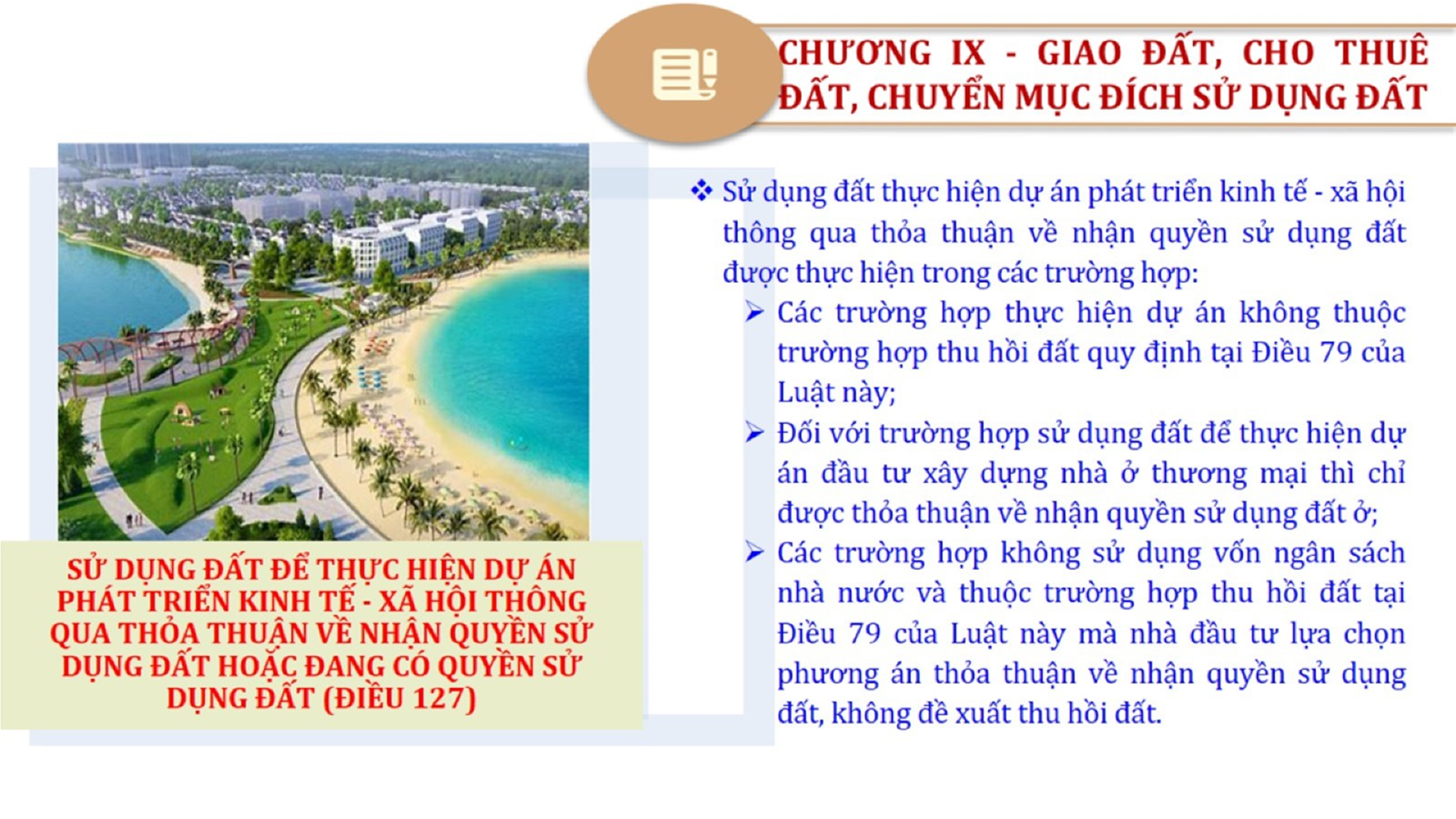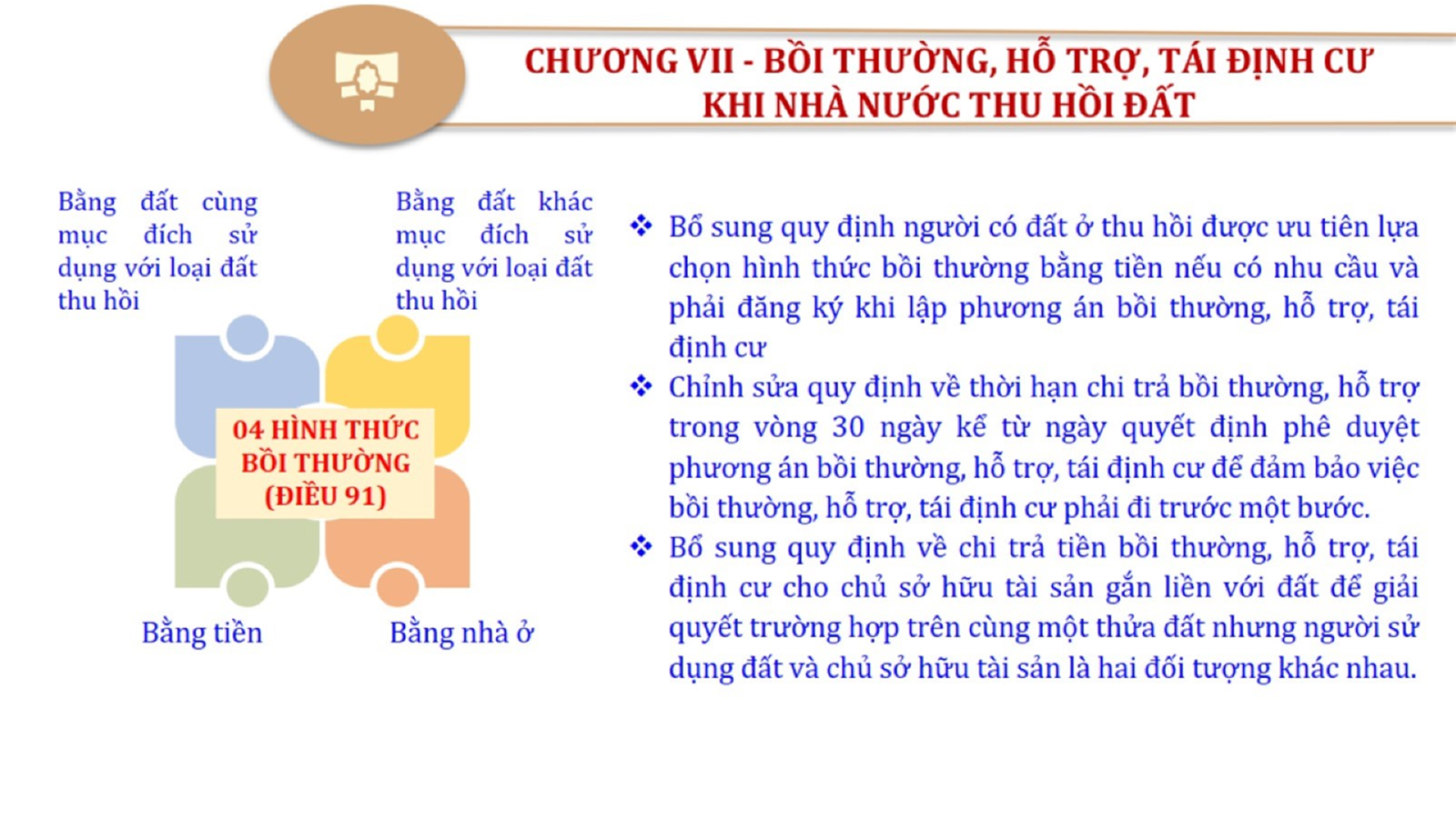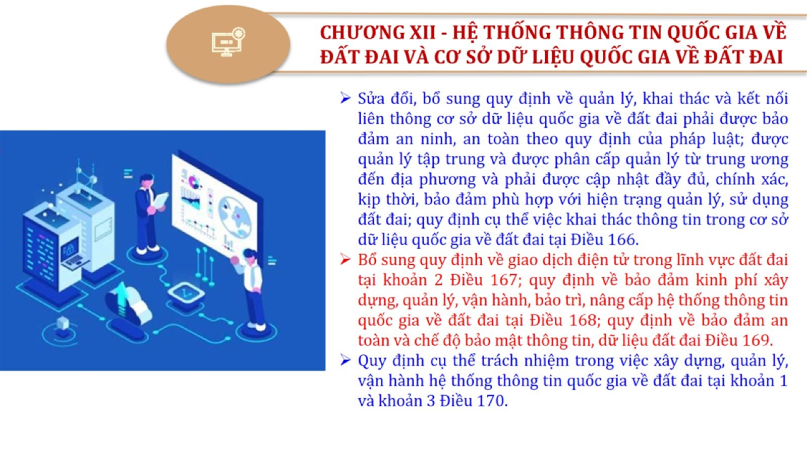 Từ lịch sử xây dựng và hoàn thiện Luật Đất đai từ năm 1998 đến năm 2024, Luật Đất đai đã trải qua 09 lần sửa đổi và bổ sung; Cơ sở xây dựng Luật Đất đai năm 2024 với hai cơ sơ chính là cơ sở chính trị và có sở thực tiễn; Quan điểm xây dựng Luật Đất đai năm 2024 với 06 nội dung lớn. Cụ thể: Một là, thể chế hóa đầy đủ, kịp thời các quan điểm, chủ trương của Đảng tại Nghị quyết Đại hội lần thứ XIII của Đảng, Nghị quyết số 18-NQ/TW và các nghị quyết, kết luận của Đảng về quản lý và sử dụng đất đai; hai là, đảm bảo kế thừa, ổn định, phát triển của hệ thống pháp luật đất đai; sửa đổi, bổ sung các quy định chưa phù hợp với thực tiễn; ba là, đảm bảo đồng bộ, thống nhất của hệ thống pháp luật về đất đai với các pháp luật có liên quan; hoàn thiện các chế định để quản lý đất đai theo chức năng là tài nguyên, tài sản, nguồn lực cả về diện tích, chất lượng, không gian sử dụng; bốn là tiếp tục đẩy mạnh phân cấp, phân quyền đồng thời thiết lập công cụ kiểm soát quyền lực của cơ quan và người có thẩm quyền trong quản lý đất đai. Tăng cường vai trò giám sát của Quốc hội, Hội đồng nhân dân, Mặt trận Tổ quốc Việt Nam, tổ chức chính trị - xã hội các cấp và Nhân dân; năm là, đẩy mạnh cải cách thủ tục hành chính; chuyển trọng tâm từ quản lý bằng các công cụ hành chính sang sử dụng hiệu quả các công cụ kinh tế để thúc đẩy sử dụng đất hợp lý, hiệu quả, bền vững; sáu là, hiện đại hóa, chuyển đổi số công tác quản lý đất đai dựa trên hệ thống thông tin, dữ liệu đất đai thống nhất, tập trung, phục vụ đa mục tiêu kết nối từ Trung ương đến địa phương, quản lý biến động đến từng thửa đất.