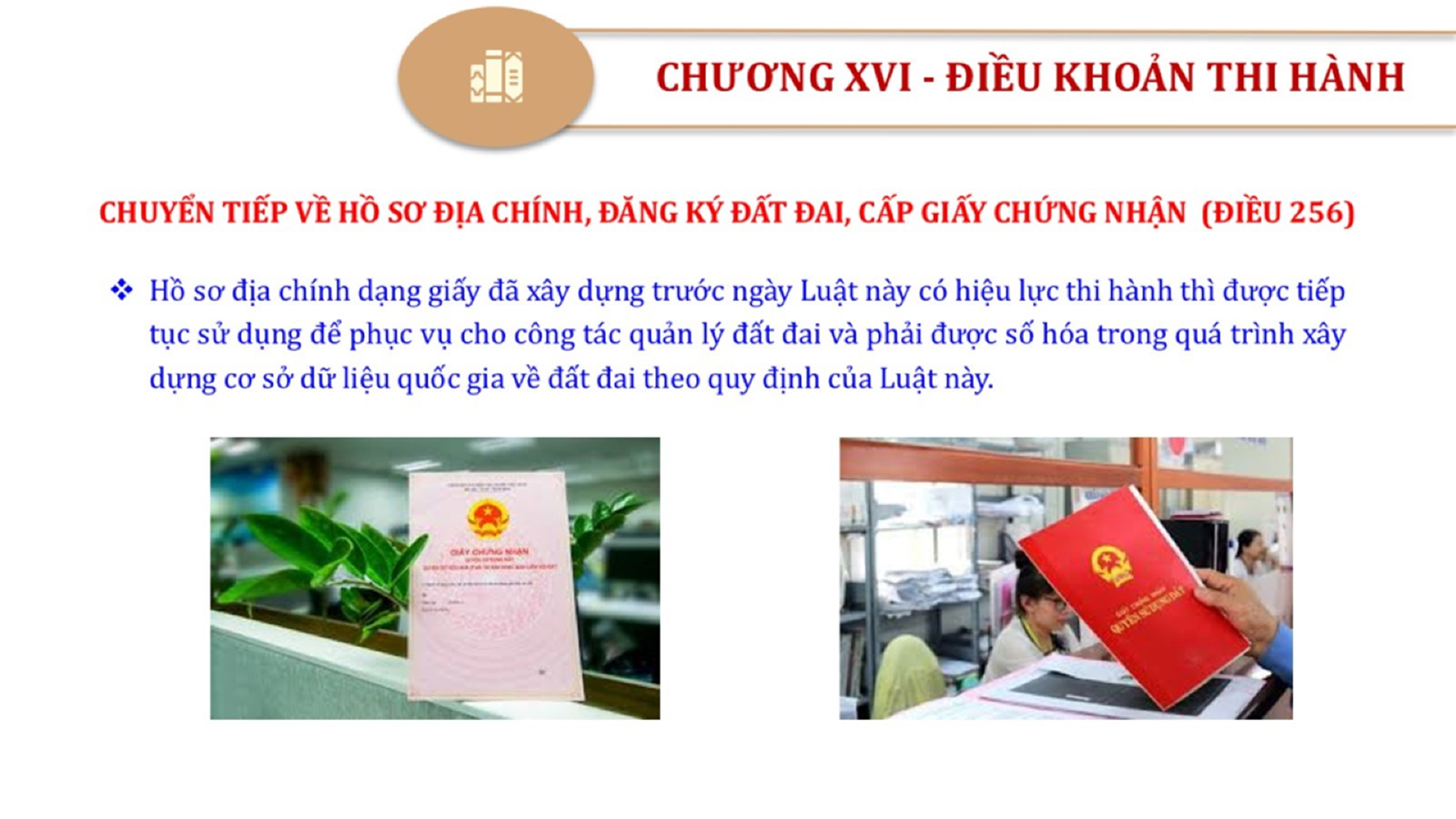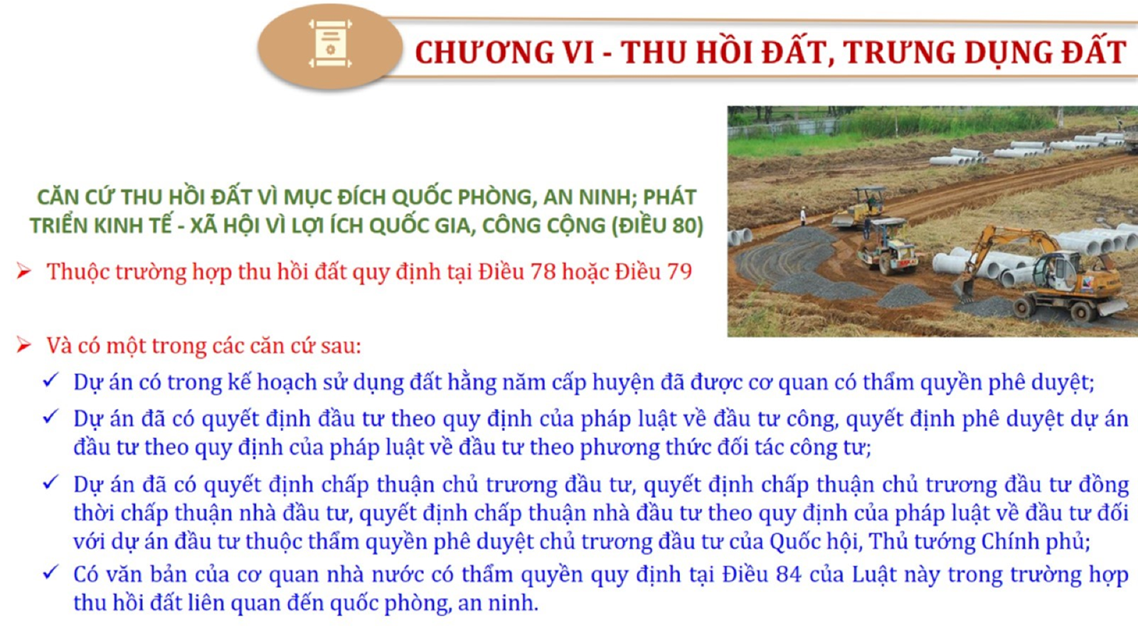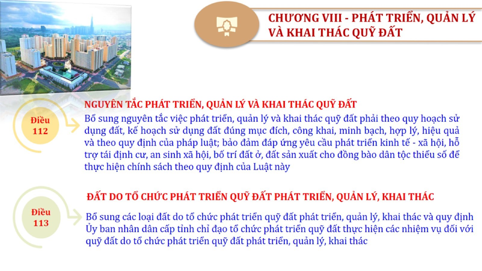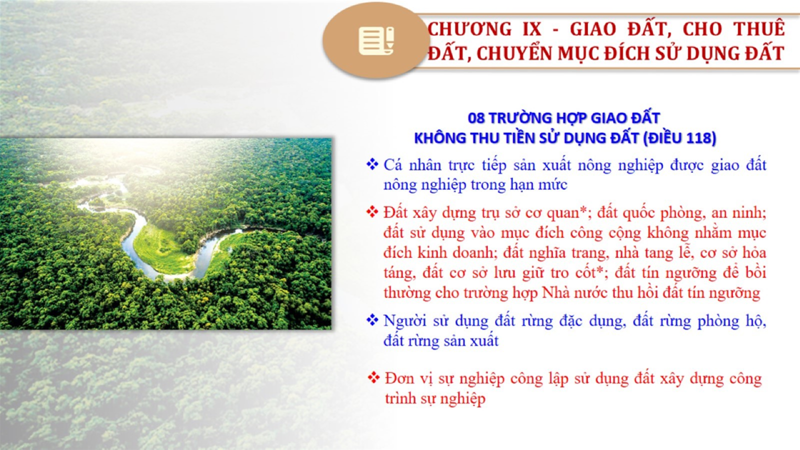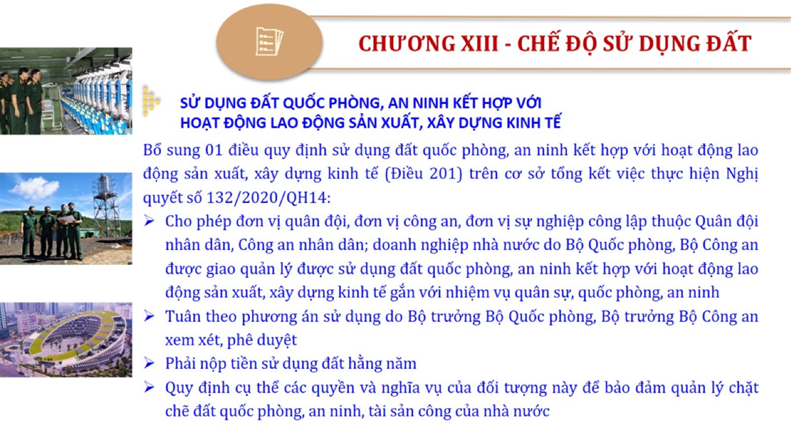 Từ lịch sử xây dựng và hoàn thiện Luật Đất đai từ năm 1998 đến năm 2024, Luật Đất đai đã trải qua 09 lần sửa đổi và bổ sung; Cơ sở xây dựng Luật Đất đai năm 2024 với hai cơ sơ chính là cơ sở chính trị và có sở thực tiễn; Quan điểm xây dựng Luật Đất đai năm 2024 với 06 nội dung lớn. Cụ thể: Một là, thể chế hóa đầy đủ, kịp thời các quan điểm, chủ trương của Đảng tại Nghị quyết Đại hội lần thứ XIII của Đảng, Nghị quyết số 18-NQ/TW và các nghị quyết, kết luận của Đảng về quản lý và sử dụng đất đai; hai là, đảm bảo kế thừa, ổn định, phát triển của hệ thống pháp luật đất đai; sửa đổi, bổ sung các quy định chưa phù hợp với thực tiễn; ba là, đảm bảo đồng bộ, thống nhất của hệ thống pháp luật về đất đai với các pháp luật có liên quan; hoàn thiện các chế định để quản lý đất đai theo chức năng là tài nguyên, tài sản, nguồn lực cả về diện tích, chất lượng, không gian sử dụng; bốn là tiếp tục đẩy mạnh phân cấp, phân quyền đồng thời thiết lập công cụ kiểm soát quyền lực của cơ quan và người có thẩm quyền trong quản lý đất đai. Tăng cường vai trò giám sát của Quốc hội, Hội đồng nhân dân, Mặt trận Tổ quốc Việt Nam, tổ chức chính trị - xã hội các cấp và Nhân dân; năm là, đẩy mạnh cải cách thủ tục hành chính; chuyển trọng tâm từ quản lý bằng các công cụ hành chính sang sử dụng hiệu quả các công cụ kinh tế để thúc đẩy sử dụng đất hợp lý, hiệu quả, bền vững; sáu là, hiện đại hóa, chuyển đổi số công tác quản lý đất đai dựa trên hệ thống thông tin, dữ liệu đất đai thống nhất, tập trung, phục vụ đa mục tiêu kết nối từ Trung ương đến địa phương, quản lý biến động đến từng thửa đất.