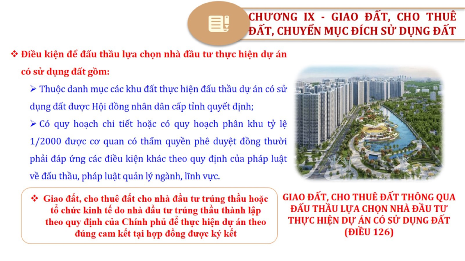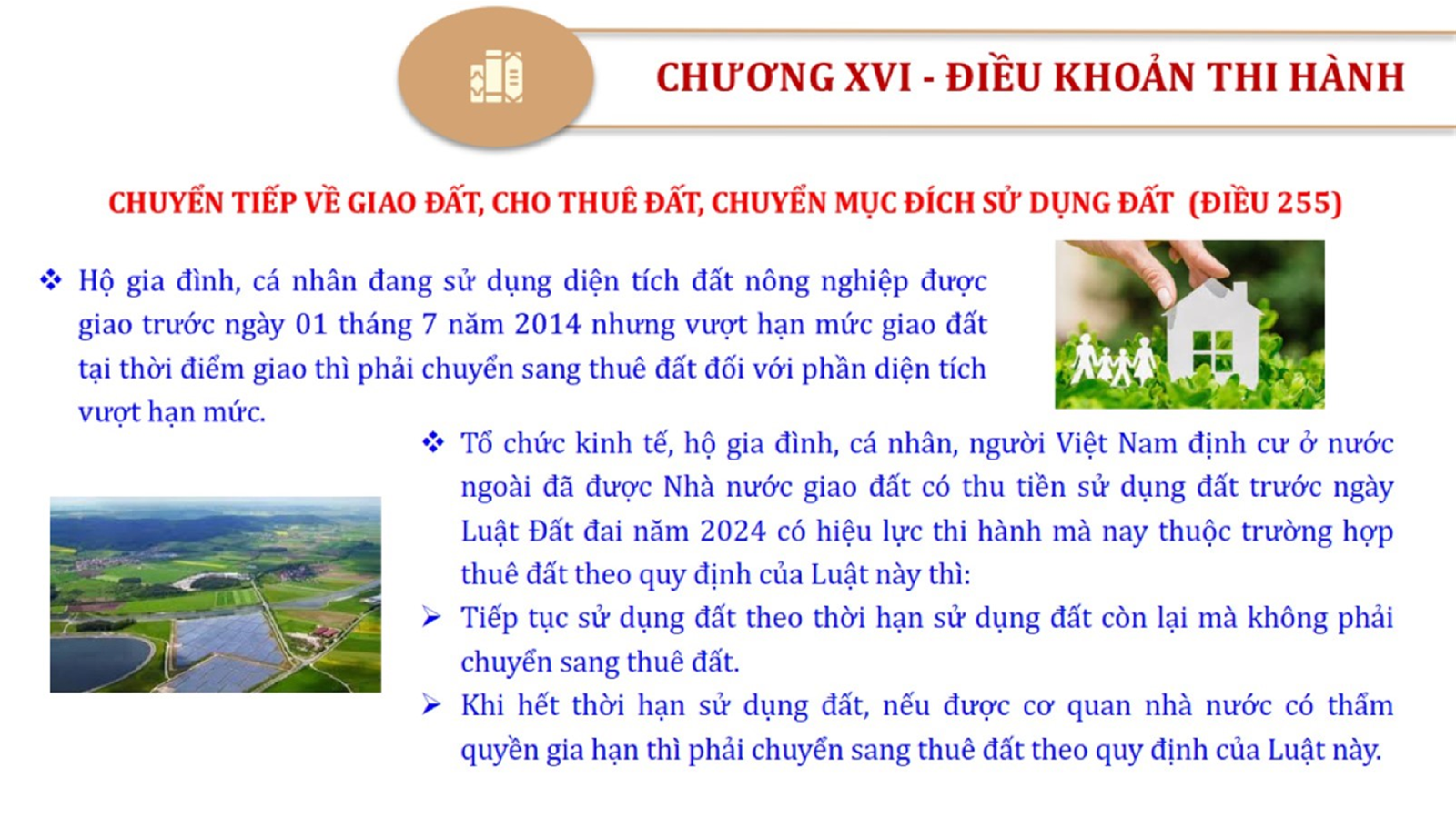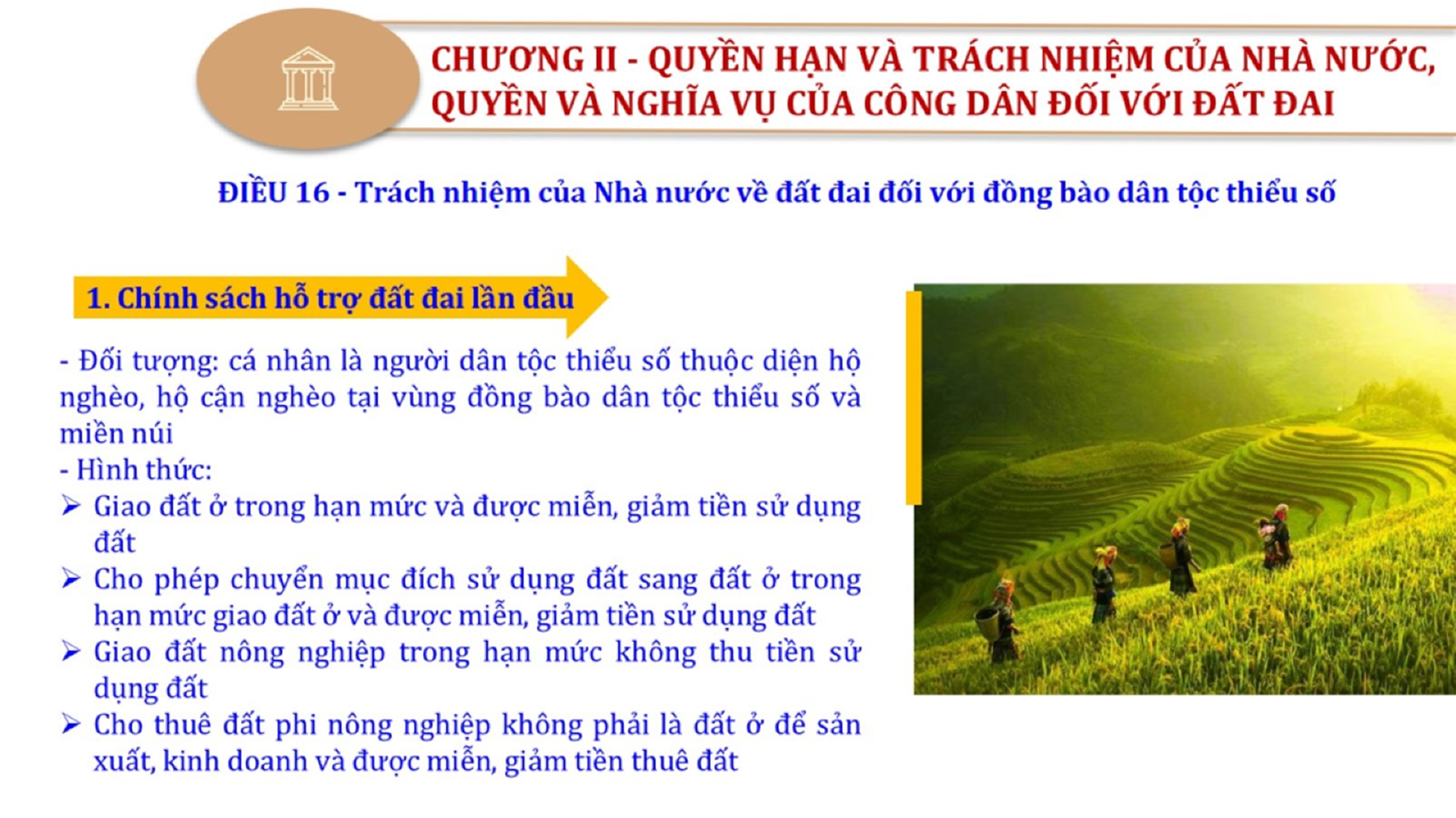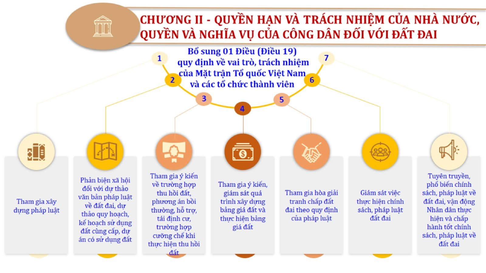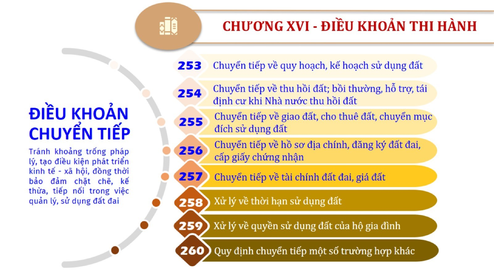 Từ lịch sử xây dựng và hoàn thiện Luật Đất đai từ năm 1998 đến năm 2024, Luật Đất đai đã trải qua 09 lần sửa đổi và bổ sung; Cơ sở xây dựng Luật Đất đai năm 2024 với hai cơ sơ chính là cơ sở chính trị và có sở thực tiễn; Quan điểm xây dựng Luật Đất đai năm 2024 với 06 nội dung lớn. Cụ thể: Một là, thể chế hóa đầy đủ, kịp thời các quan điểm, chủ trương của Đảng tại Nghị quyết Đại hội lần thứ XIII của Đảng, Nghị quyết số 18-NQ/TW và các nghị quyết, kết luận của Đảng về quản lý và sử dụng đất đai; hai là, đảm bảo kế thừa, ổn định, phát triển của hệ thống pháp luật đất đai; sửa đổi, bổ sung các quy định chưa phù hợp với thực tiễn; ba là, đảm bảo đồng bộ, thống nhất của hệ thống pháp luật về đất đai với các pháp luật có liên quan; hoàn thiện các chế định để quản lý đất đai theo chức năng là tài nguyên, tài sản, nguồn lực cả về diện tích, chất lượng, không gian sử dụng; bốn là tiếp tục đẩy mạnh phân cấp, phân quyền đồng thời thiết lập công cụ kiểm soát quyền lực của cơ quan và người có thẩm quyền trong quản lý đất đai. Tăng cường vai trò giám sát của Quốc hội, Hội đồng nhân dân, Mặt trận Tổ quốc Việt Nam, tổ chức chính trị - xã hội các cấp và Nhân dân; năm là, đẩy mạnh cải cách thủ tục hành chính; chuyển trọng tâm từ quản lý bằng các công cụ hành chính sang sử dụng hiệu quả các công cụ kinh tế để thúc đẩy sử dụng đất hợp lý, hiệu quả, bền vững; sáu là, hiện đại hóa, chuyển đổi số công tác quản lý đất đai dựa trên hệ thống thông tin, dữ liệu đất đai thống nhất, tập trung, phục vụ đa mục tiêu kết nối từ Trung ương đến địa phương, quản lý biến động đến từng thửa đất.