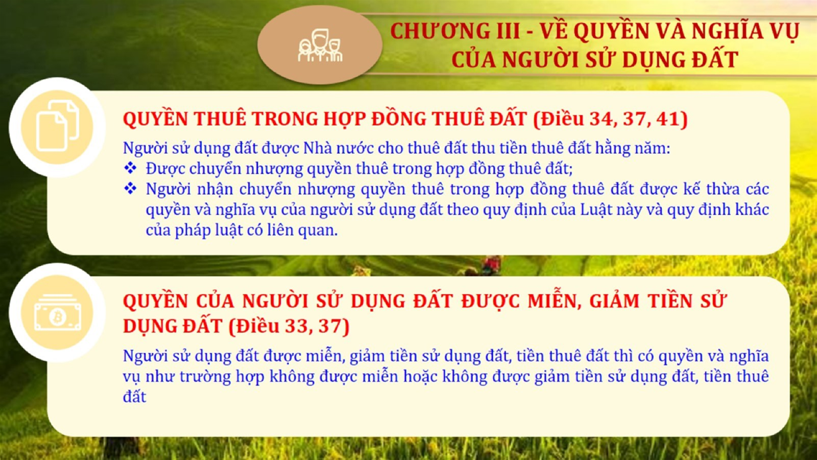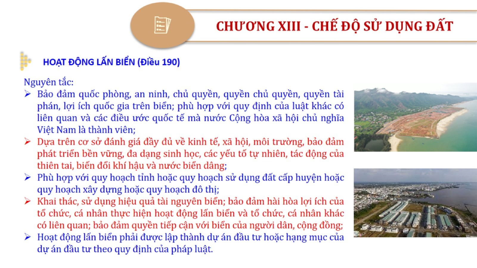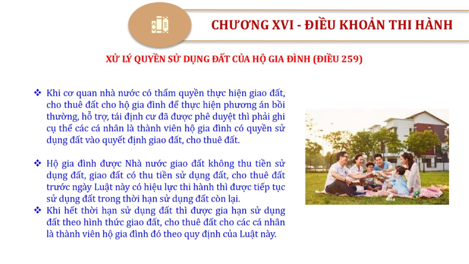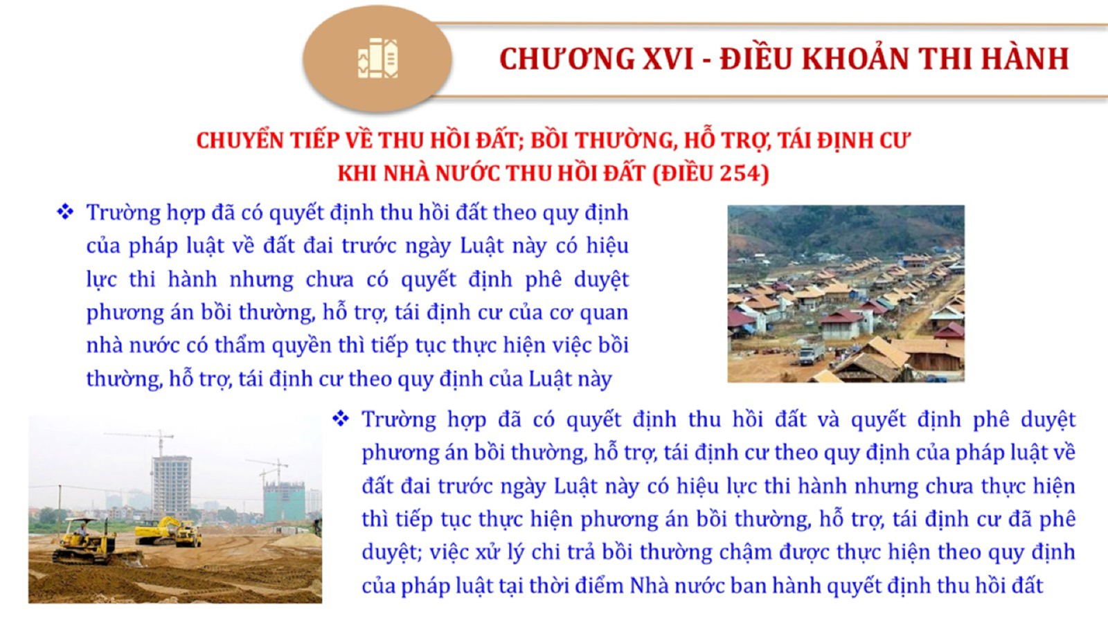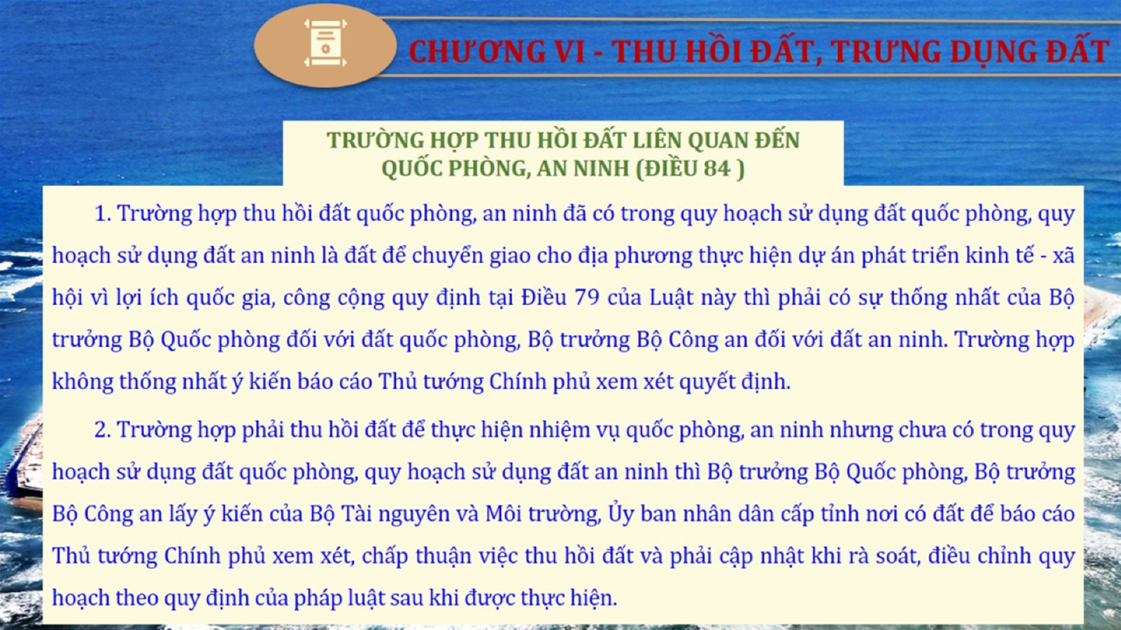 Từ lịch sử xây dựng và hoàn thiện Luật Đất đai từ năm 1998 đến năm 2024, Luật Đất đai đã trải qua 09 lần sửa đổi và bổ sung; Cơ sở xây dựng Luật Đất đai năm 2024 với hai cơ sơ chính là cơ sở chính trị và có sở thực tiễn; Quan điểm xây dựng Luật Đất đai năm 2024 với 06 nội dung lớn. Cụ thể: Một là, thể chế hóa đầy đủ, kịp thời các quan điểm, chủ trương của Đảng tại Nghị quyết Đại hội lần thứ XIII của Đảng, Nghị quyết số 18-NQ/TW và các nghị quyết, kết luận của Đảng về quản lý và sử dụng đất đai; hai là, đảm bảo kế thừa, ổn định, phát triển của hệ thống pháp luật đất đai; sửa đổi, bổ sung các quy định chưa phù hợp với thực tiễn; ba là, đảm bảo đồng bộ, thống nhất của hệ thống pháp luật về đất đai với các pháp luật có liên quan; hoàn thiện các chế định để quản lý đất đai theo chức năng là tài nguyên, tài sản, nguồn lực cả về diện tích, chất lượng, không gian sử dụng; bốn là tiếp tục đẩy mạnh phân cấp, phân quyền đồng thời thiết lập công cụ kiểm soát quyền lực của cơ quan và người có thẩm quyền trong quản lý đất đai. Tăng cường vai trò giám sát của Quốc hội, Hội đồng nhân dân, Mặt trận Tổ quốc Việt Nam, tổ chức chính trị - xã hội các cấp và Nhân dân; năm là, đẩy mạnh cải cách thủ tục hành chính; chuyển trọng tâm từ quản lý bằng các công cụ hành chính sang sử dụng hiệu quả các công cụ kinh tế để thúc đẩy sử dụng đất hợp lý, hiệu quả, bền vững; sáu là, hiện đại hóa, chuyển đổi số công tác quản lý đất đai dựa trên hệ thống thông tin, dữ liệu đất đai thống nhất, tập trung, phục vụ đa mục tiêu kết nối từ Trung ương đến địa phương, quản lý biến động đến từng thửa đất.
