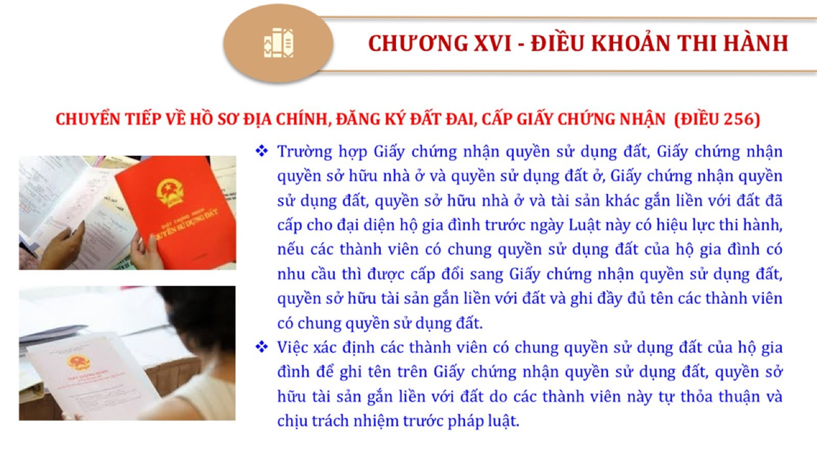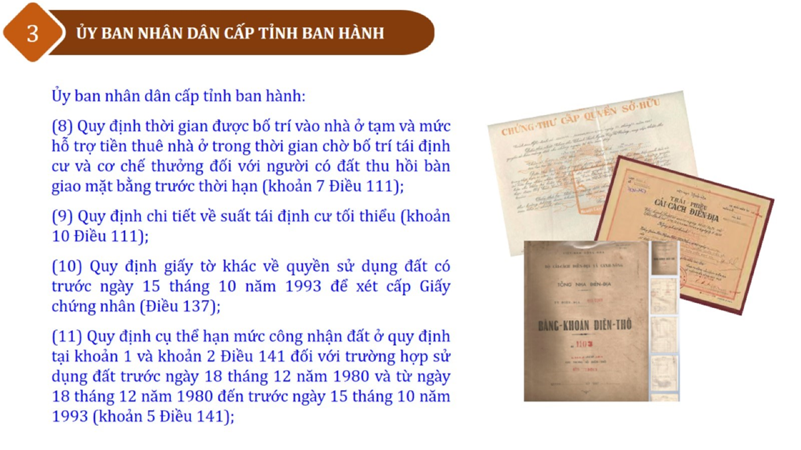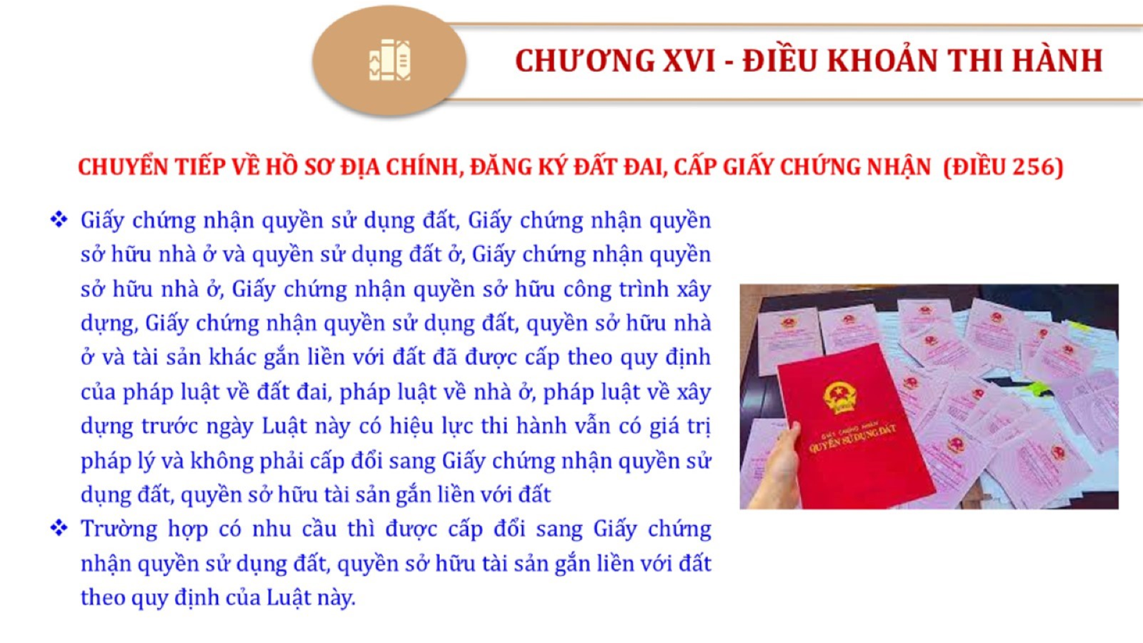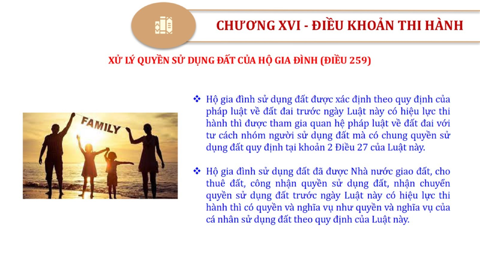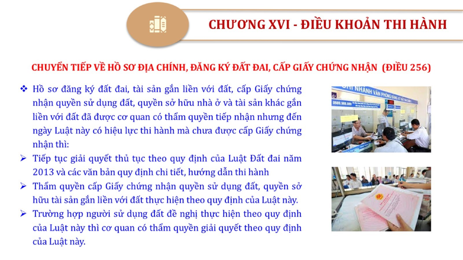 Từ lịch sử xây dựng và hoàn thiện Luật Đất đai từ năm 1998 đến năm 2024, Luật Đất đai đã trải qua 09 lần sửa đổi và bổ sung; Cơ sở xây dựng Luật Đất đai năm 2024 với hai cơ sơ chính là cơ sở chính trị và có sở thực tiễn; Quan điểm xây dựng Luật Đất đai năm 2024 với 06 nội dung lớn. Cụ thể: Một là, thể chế hóa đầy đủ, kịp thời các quan điểm, chủ trương của Đảng tại Nghị quyết Đại hội lần thứ XIII của Đảng, Nghị quyết số 18-NQ/TW và các nghị quyết, kết luận của Đảng về quản lý và sử dụng đất đai; hai là, đảm bảo kế thừa, ổn định, phát triển của hệ thống pháp luật đất đai; sửa đổi, bổ sung các quy định chưa phù hợp với thực tiễn; ba là, đảm bảo đồng bộ, thống nhất của hệ thống pháp luật về đất đai với các pháp luật có liên quan; hoàn thiện các chế định để quản lý đất đai theo chức năng là tài nguyên, tài sản, nguồn lực cả về diện tích, chất lượng, không gian sử dụng; bốn là tiếp tục đẩy mạnh phân cấp, phân quyền đồng thời thiết lập công cụ kiểm soát quyền lực của cơ quan và người có thẩm quyền trong quản lý đất đai. Tăng cường vai trò giám sát của Quốc hội, Hội đồng nhân dân, Mặt trận Tổ quốc Việt Nam, tổ chức chính trị - xã hội các cấp và Nhân dân; năm là, đẩy mạnh cải cách thủ tục hành chính; chuyển trọng tâm từ quản lý bằng các công cụ hành chính sang sử dụng hiệu quả các công cụ kinh tế để thúc đẩy sử dụng đất hợp lý, hiệu quả, bền vững; sáu là, hiện đại hóa, chuyển đổi số công tác quản lý đất đai dựa trên hệ thống thông tin, dữ liệu đất đai thống nhất, tập trung, phục vụ đa mục tiêu kết nối từ Trung ương đến địa phương, quản lý biến động đến từng thửa đất.