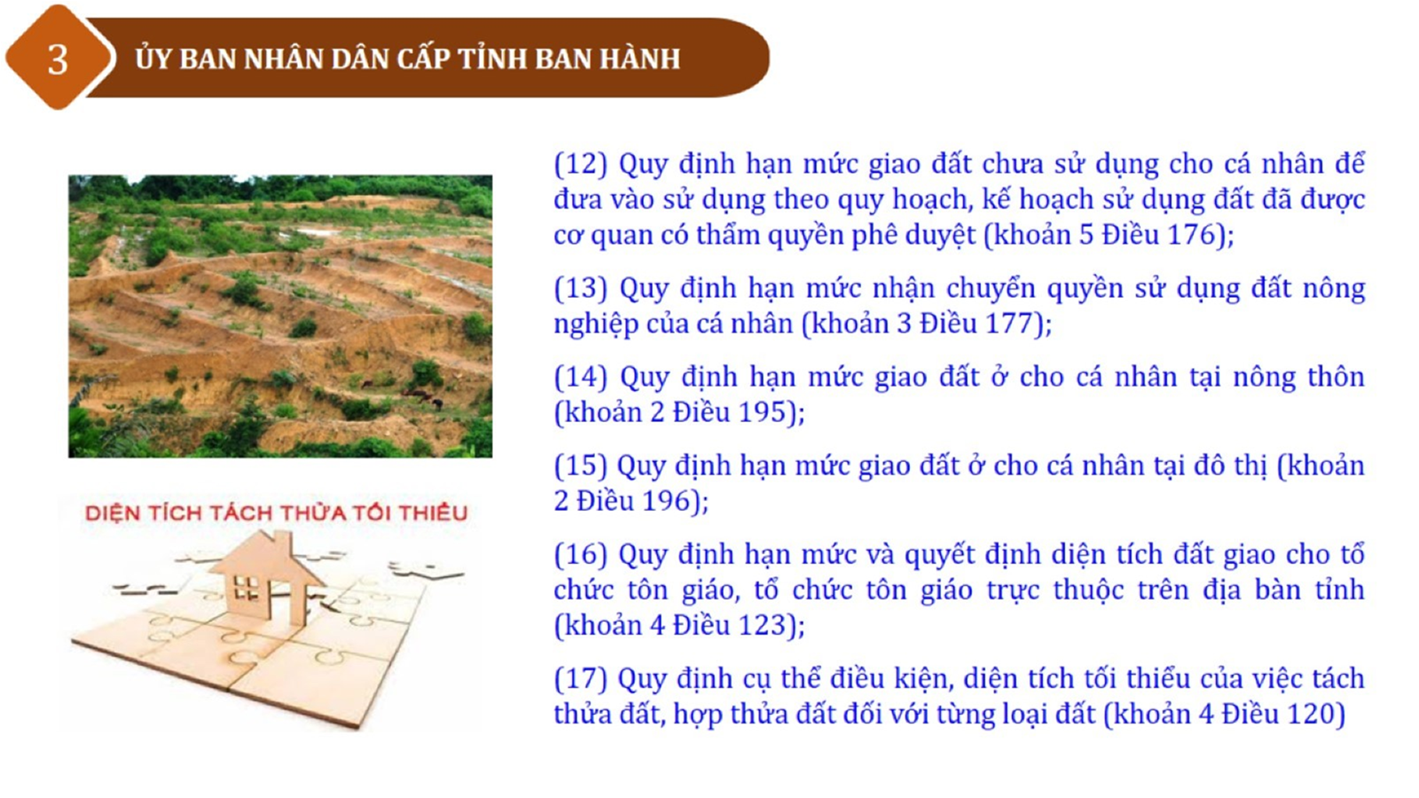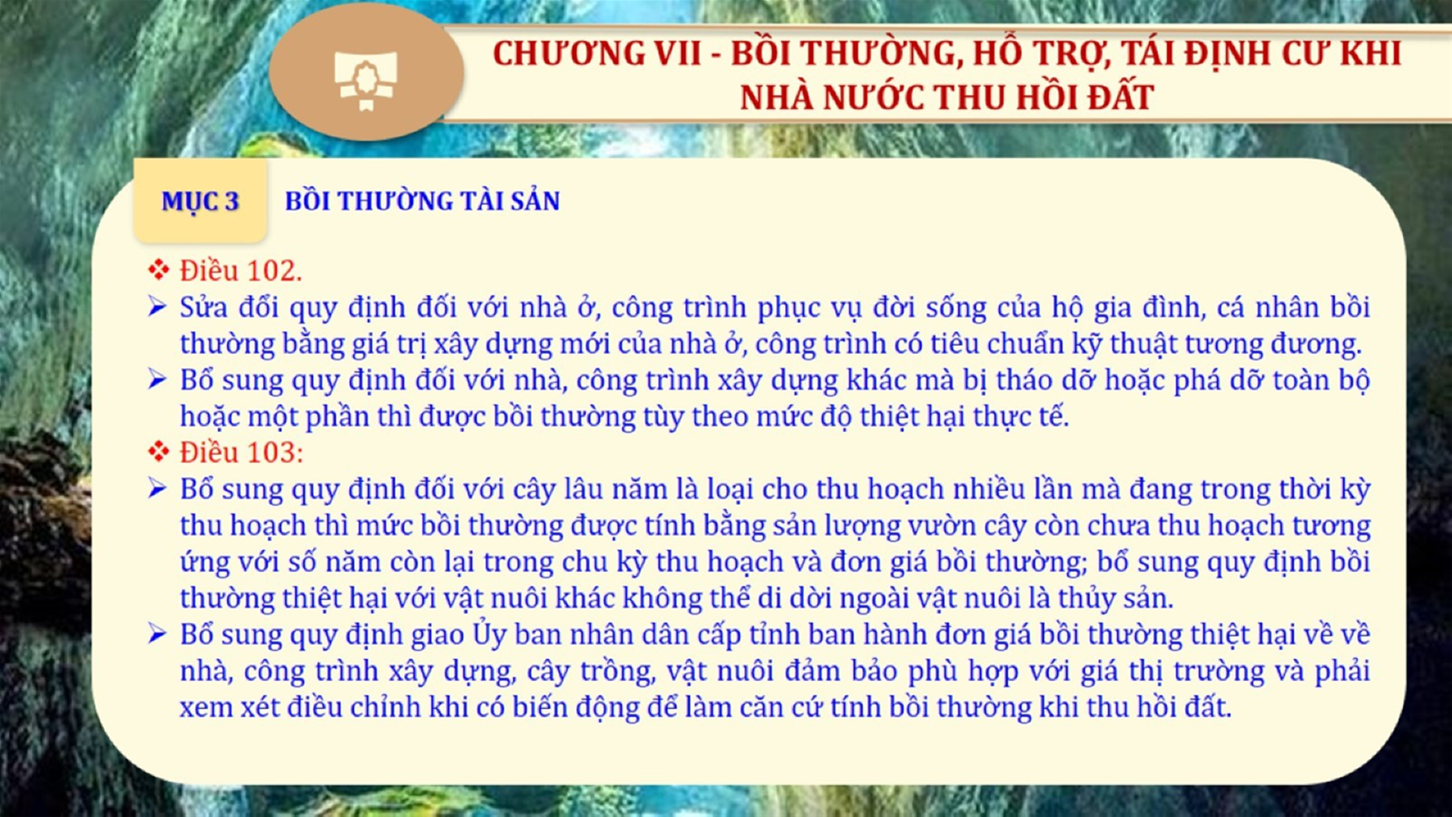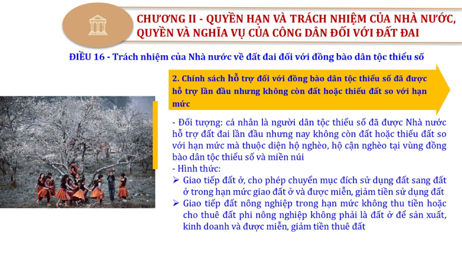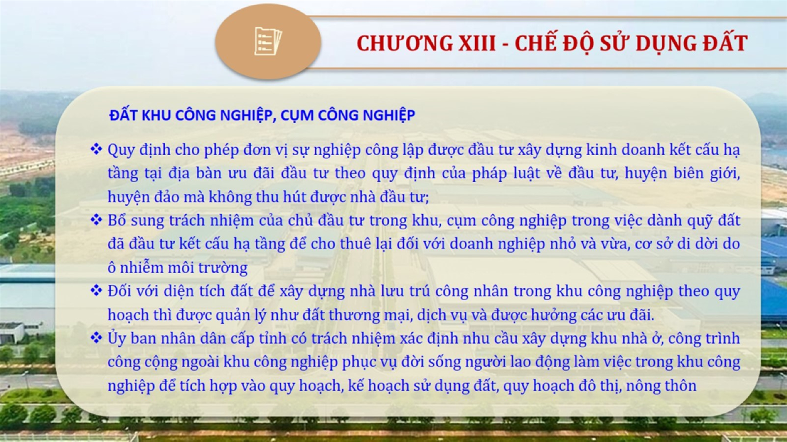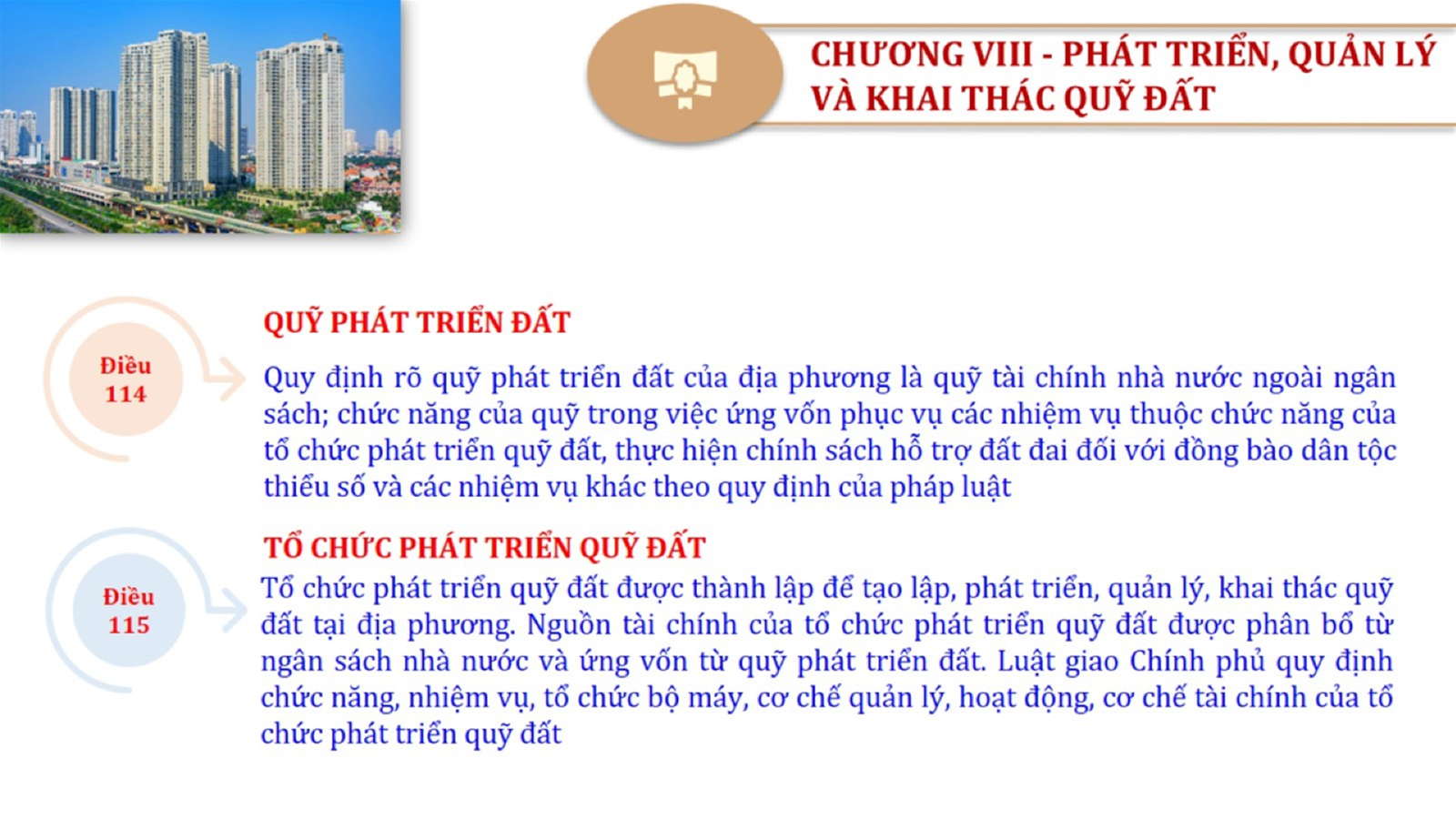 Từ lịch sử xây dựng và hoàn thiện Luật Đất đai từ năm 1998 đến năm 2024, Luật Đất đai đã trải qua 09 lần sửa đổi và bổ sung; Cơ sở xây dựng Luật Đất đai năm 2024 với hai cơ sơ chính là cơ sở chính trị và có sở thực tiễn; Quan điểm xây dựng Luật Đất đai năm 2024 với 06 nội dung lớn. Cụ thể: Một là, thể chế hóa đầy đủ, kịp thời các quan điểm, chủ trương của Đảng tại Nghị quyết Đại hội lần thứ XIII của Đảng, Nghị quyết số 18-NQ/TW và các nghị quyết, kết luận của Đảng về quản lý và sử dụng đất đai; hai là, đảm bảo kế thừa, ổn định, phát triển của hệ thống pháp luật đất đai; sửa đổi, bổ sung các quy định chưa phù hợp với thực tiễn; ba là, đảm bảo đồng bộ, thống nhất của hệ thống pháp luật về đất đai với các pháp luật có liên quan; hoàn thiện các chế định để quản lý đất đai theo chức năng là tài nguyên, tài sản, nguồn lực cả về diện tích, chất lượng, không gian sử dụng; bốn là tiếp tục đẩy mạnh phân cấp, phân quyền đồng thời thiết lập công cụ kiểm soát quyền lực của cơ quan và người có thẩm quyền trong quản lý đất đai. Tăng cường vai trò giám sát của Quốc hội, Hội đồng nhân dân, Mặt trận Tổ quốc Việt Nam, tổ chức chính trị - xã hội các cấp và Nhân dân; năm là, đẩy mạnh cải cách thủ tục hành chính; chuyển trọng tâm từ quản lý bằng các công cụ hành chính sang sử dụng hiệu quả các công cụ kinh tế để thúc đẩy sử dụng đất hợp lý, hiệu quả, bền vững; sáu là, hiện đại hóa, chuyển đổi số công tác quản lý đất đai dựa trên hệ thống thông tin, dữ liệu đất đai thống nhất, tập trung, phục vụ đa mục tiêu kết nối từ Trung ương đến địa phương, quản lý biến động đến từng thửa đất.