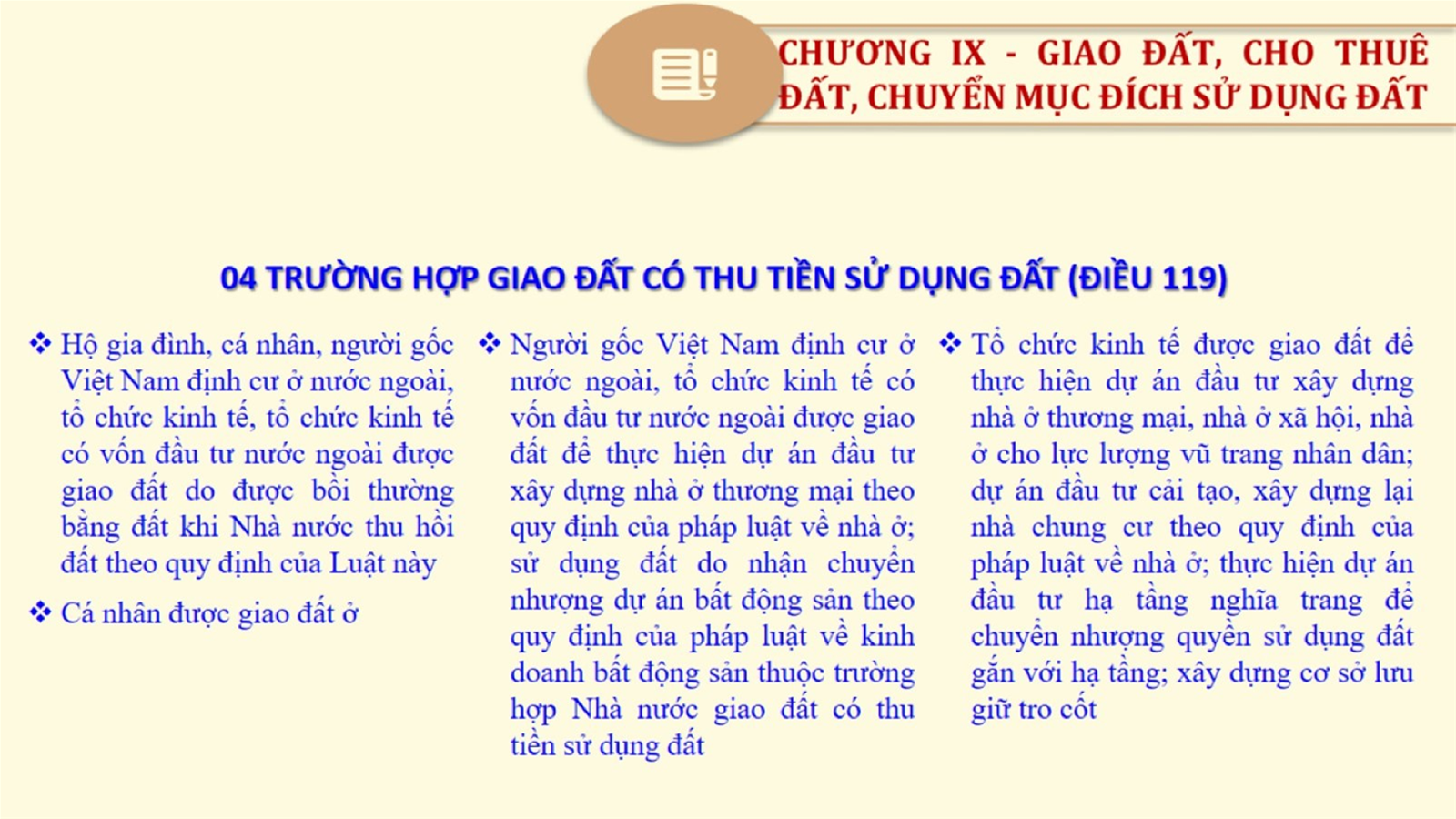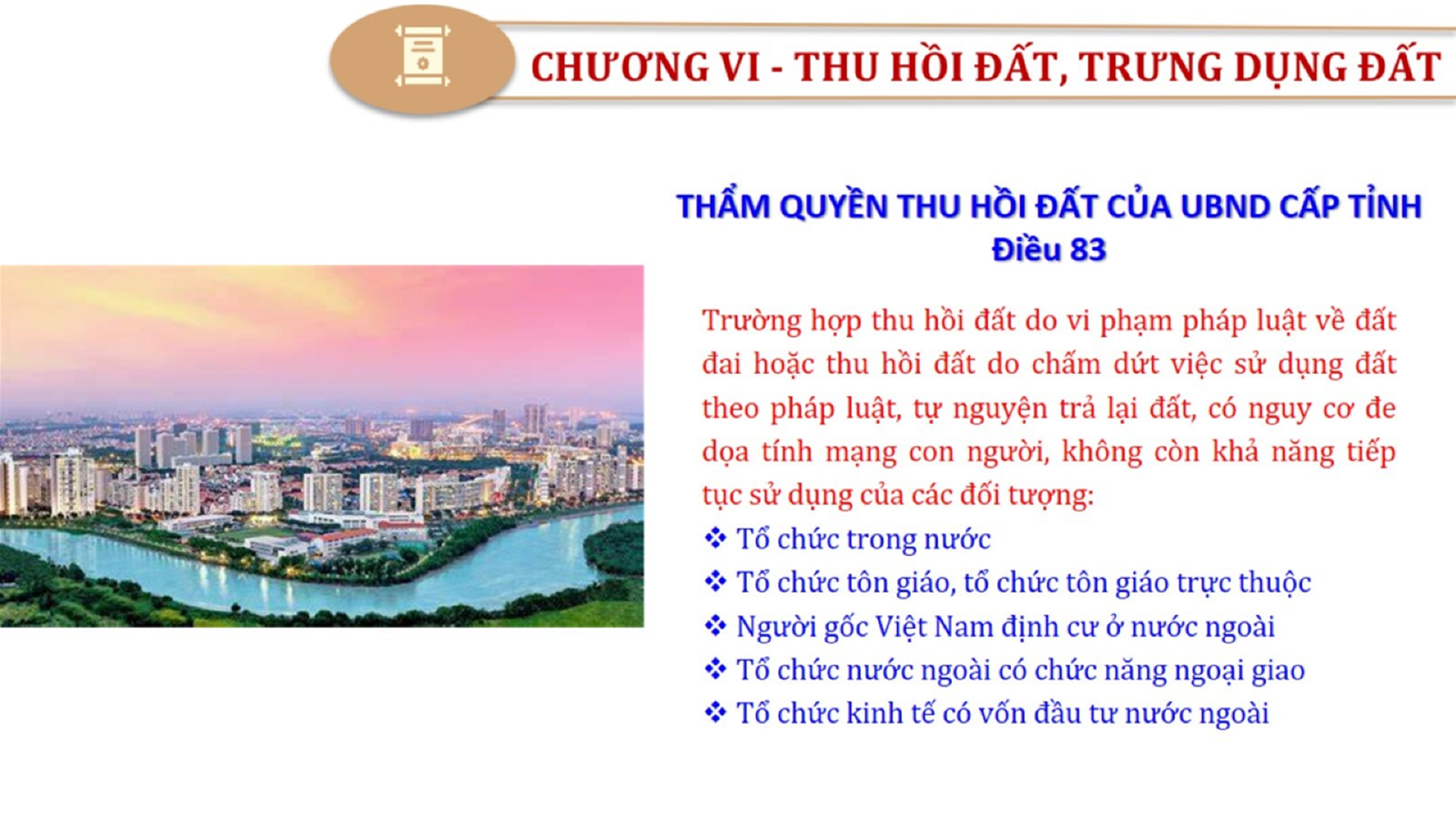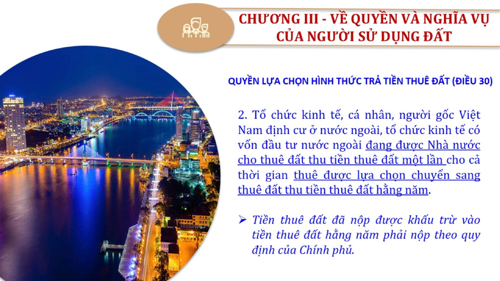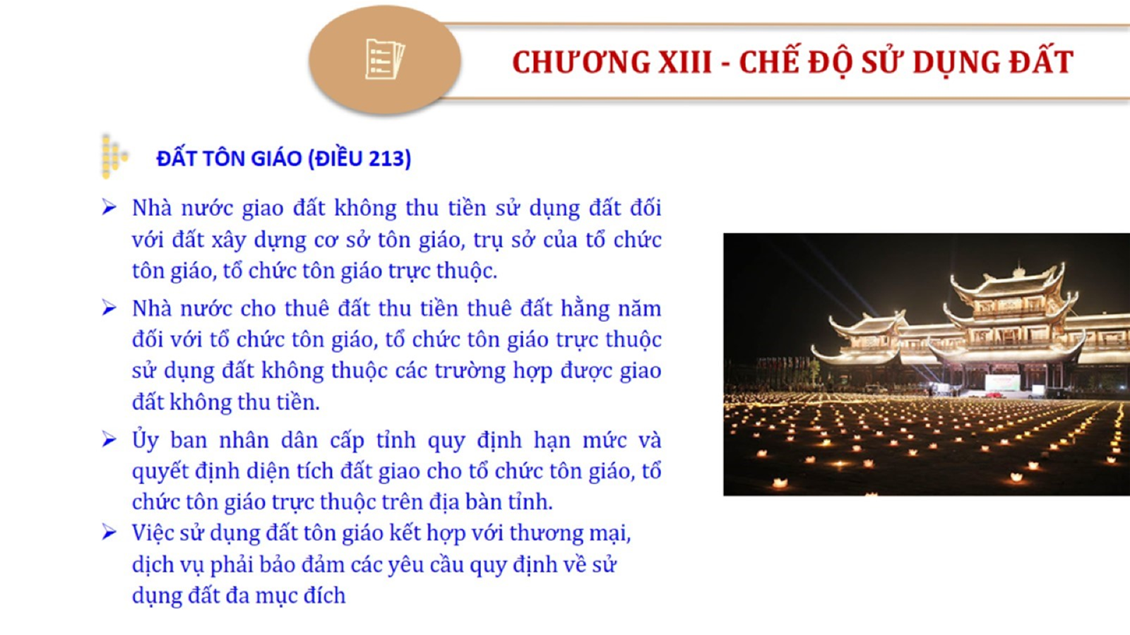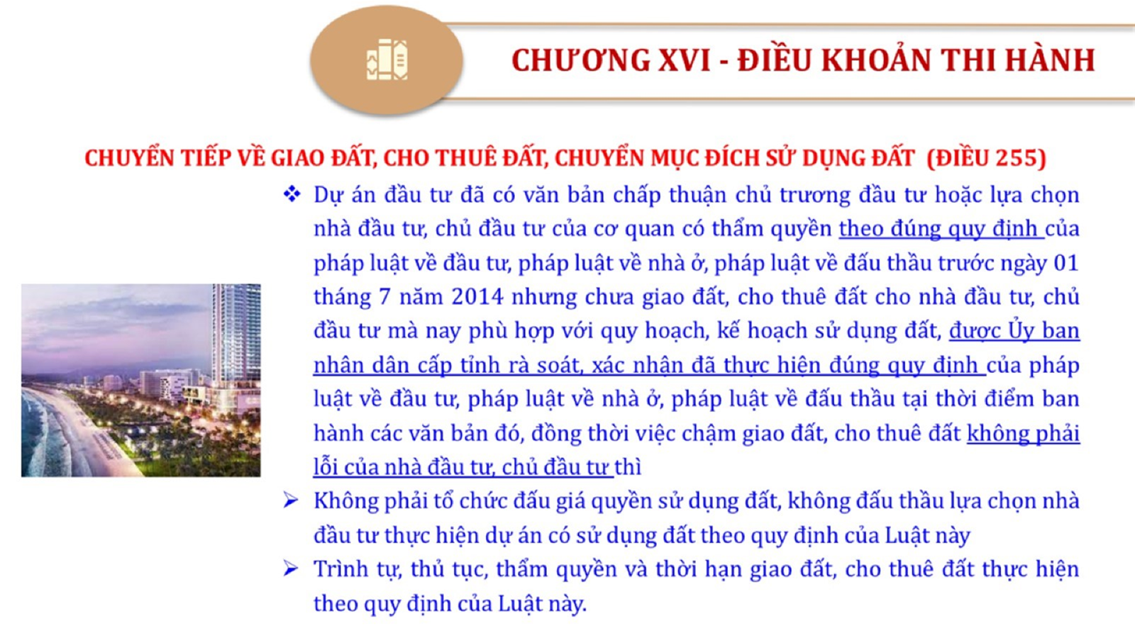 Từ lịch sử xây dựng và hoàn thiện Luật Đất đai từ năm 1998 đến năm 2024, Luật Đất đai đã trải qua 09 lần sửa đổi và bổ sung; Cơ sở xây dựng Luật Đất đai năm 2024 với hai cơ sơ chính là cơ sở chính trị và có sở thực tiễn; Quan điểm xây dựng Luật Đất đai năm 2024 với 06 nội dung lớn. Cụ thể: Một là, thể chế hóa đầy đủ, kịp thời các quan điểm, chủ trương của Đảng tại Nghị quyết Đại hội lần thứ XIII của Đảng, Nghị quyết số 18-NQ/TW và các nghị quyết, kết luận của Đảng về quản lý và sử dụng đất đai; hai là, đảm bảo kế thừa, ổn định, phát triển của hệ thống pháp luật đất đai; sửa đổi, bổ sung các quy định chưa phù hợp với thực tiễn; ba là, đảm bảo đồng bộ, thống nhất của hệ thống pháp luật về đất đai với các pháp luật có liên quan; hoàn thiện các chế định để quản lý đất đai theo chức năng là tài nguyên, tài sản, nguồn lực cả về diện tích, chất lượng, không gian sử dụng; bốn là tiếp tục đẩy mạnh phân cấp, phân quyền đồng thời thiết lập công cụ kiểm soát quyền lực của cơ quan và người có thẩm quyền trong quản lý đất đai. Tăng cường vai trò giám sát của Quốc hội, Hội đồng nhân dân, Mặt trận Tổ quốc Việt Nam, tổ chức chính trị - xã hội các cấp và Nhân dân; năm là, đẩy mạnh cải cách thủ tục hành chính; chuyển trọng tâm từ quản lý bằng các công cụ hành chính sang sử dụng hiệu quả các công cụ kinh tế để thúc đẩy sử dụng đất hợp lý, hiệu quả, bền vững; sáu là, hiện đại hóa, chuyển đổi số công tác quản lý đất đai dựa trên hệ thống thông tin, dữ liệu đất đai thống nhất, tập trung, phục vụ đa mục tiêu kết nối từ Trung ương đến địa phương, quản lý biến động đến từng thửa đất.
