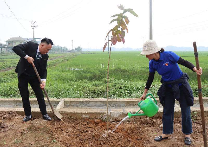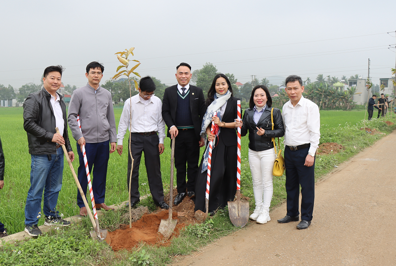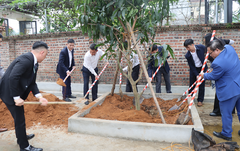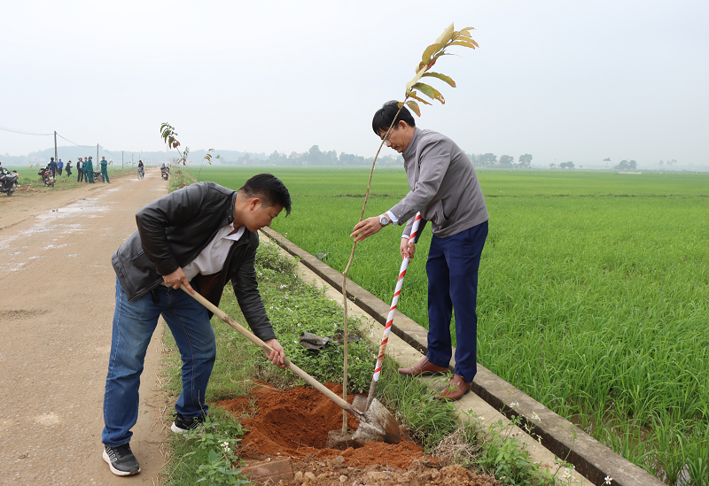 TS. Đào Xuân Hưng, Tổng Biên tập Tạp chí Tài nguyên và Môi trường cùng lãnh đạo xã Vạn Thắng tham gia trồng cây tại nhà văn hóa thôn Giản Hiền