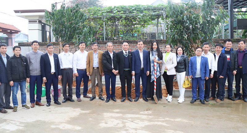 Các đại biểu chụp ảnh lưu niệm tại nhà văn hóa thôn Giản Hiền