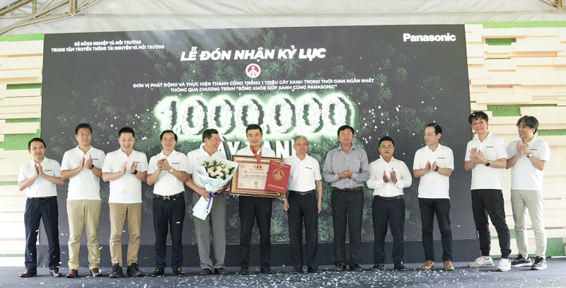 Đại diện Panasonic nhận chứng nhận kỷ lục “1 triệu cây xanh được trồng tại Việt Nam trong thời gian ngắn nhất” từ Tổ chức Kỷ lục Việt Nam