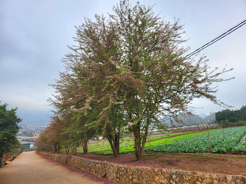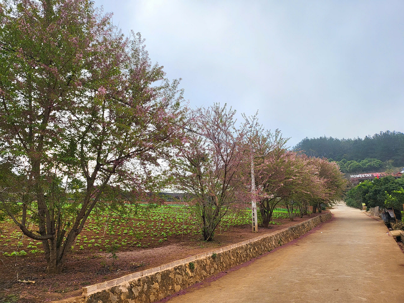Hàng cây mai anh đào khoe sắc giữa mùa Xuân Mộc Châu