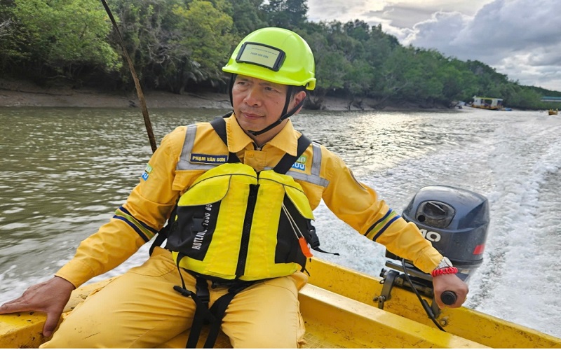 Đã có lần, ngay giữa vùng biển mưa bão, xuồng chở ông và đội ứng phó bị sóng đánh suýt lật. Ông vẫn đùa: “Làm nghề này, chuyện đối mặt với rủi ro là thường. Mình ngại thì ai làm?” - nụ cười nhẹ, giọng trầm mà vững chãi, như chính cách ông bước qua bùn lầy để giữ vững màu xanh.