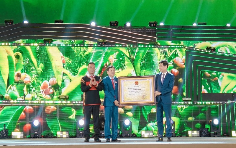 Lãnh đạo Ủy ban nhân dân tỉnh Đắk Lắk nhận Chứng nhận Di sản văn hóa phi vật thể quốc gia “Tri thức trồng và chế biến cà-phê” của Bộ Văn hóa-Thể thao và Du lịch.