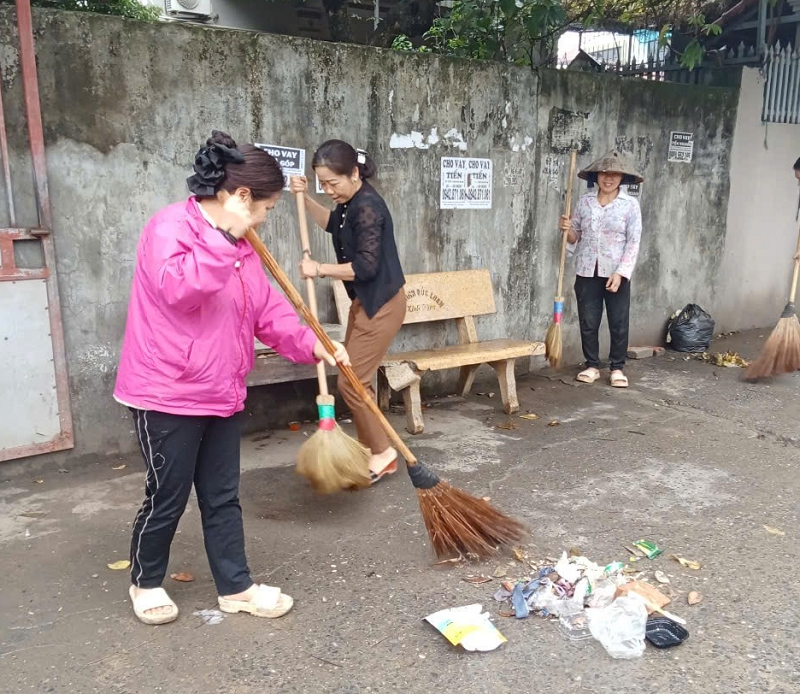 Chi hội phụ nữ Tổ dân Phố Vác tham gia dọn vệ sinh môi trường
