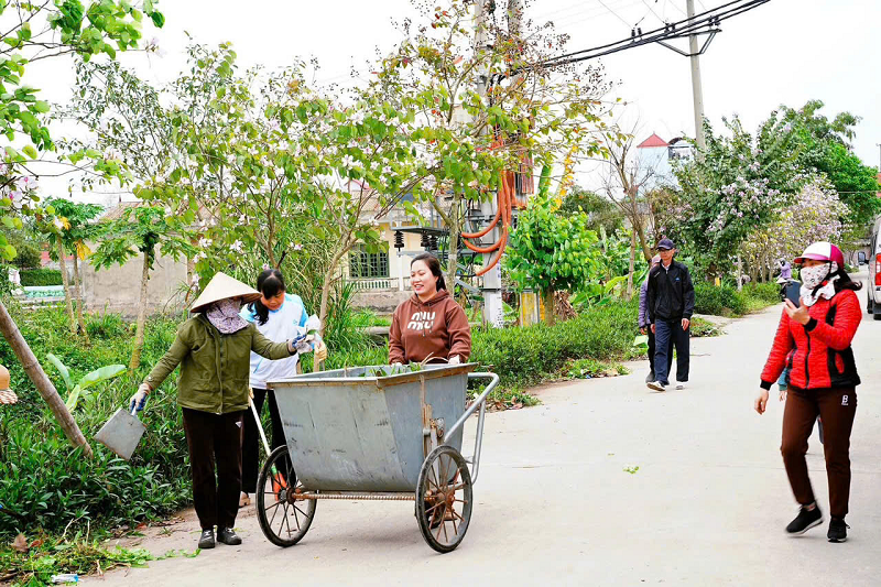 Không chỉ dừng lại ở việc trồng hoa và vệ sinh môi trường, Hội Phụ nữ xã còn lồng ghép tuyên truyền phân loại rác tại nguồn, kêu gọi người dân hạn chế sử dụng túi nilon và nhựa dùng một lần, sử dụng giỏ, làn tái sử dụng khi đi chợ.