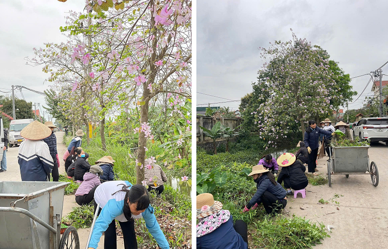 Không chỉ trồng hoa, các chị em còn tổ chức quét dọn, thu gom rác thải, phát quang bụi rậm, khơi thông cống rãnh và bóc xóa quảng cáo sai quy định trên các trụ điện, tường rào. Những việc làm tuy nhỏ nhưng góp phần quan trọng làm thay đổi diện mạo môi trường sống tại địa phương.