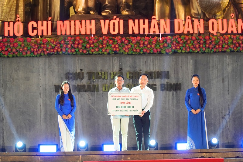 Cũng tại buổi lễ, nhân dịp Tuần lễ Biển và Hải đảo Việt Nam 2025, Ban tổ chức trao tặng kinh phí xây dựng nhà tình nghĩa cho một số hộ gia đình chính sách và có hoàn cảnh khó khăn trên địa bàn tỉnh Quảng Bình, góp phần lan tỏa tinh thần nhân văn và trách nhiệm cộng đồng. TS. Đào Xuân Hưng, Tổng Biên tập Tạp chí Nông nghiệp và Môi trường đã đại diện cho nhà tài trợ trao tặng kinh phí 100 triệu đồng cho hộ ông Trương Tâm (xã Hải Ninh, huyện Quảng Ninh) xây dựng nhà tình nghĩa.
