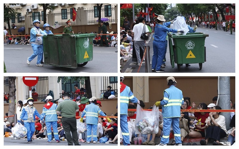 Giữa dòng người nô nức dự lễ Quốc khánh 2-9, những người công nhân môi trường vẫn âm thầm làm việc, góp phần giữ cho không gian Thủ đô xanh, sạch, văn minh.