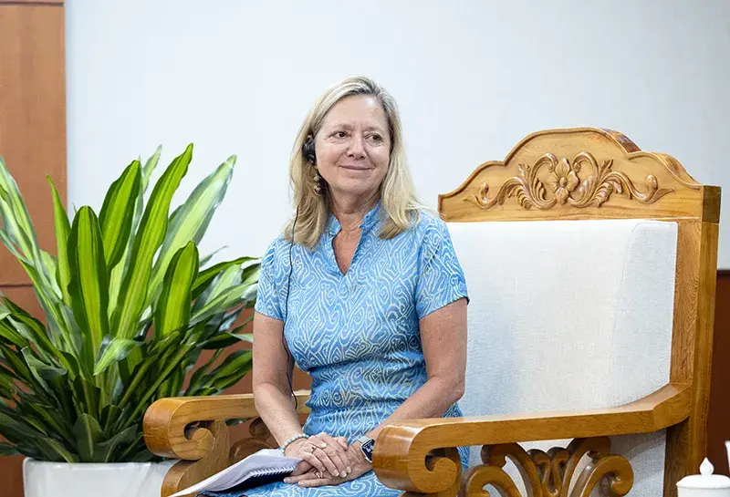 Quyền Bộ trưởng Bộ Nông nghiệp và Môi trường Trần Đức Thắng trao đổi cùng bà Mariam Sherman