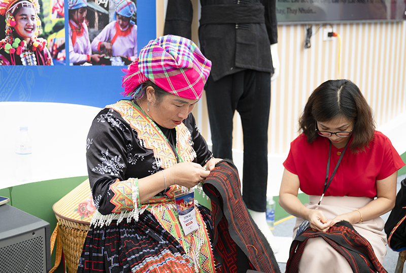 Người dân tại tỉnh Lai Châu trực tiếp thể hiện nghệ thuật văn hóa truyền thống tại triển lãm.