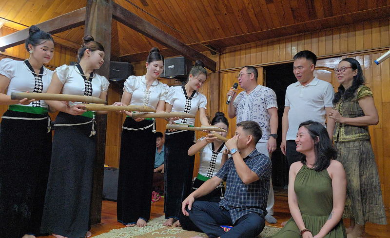 "Một trong những khoảnh khắc đáng nhớ của đoàn tại Mường Lò, tiếng cười vang lên giữa núi rừng, hòa cùng sự thân thiện nồng hậu của đồng bào Thái"