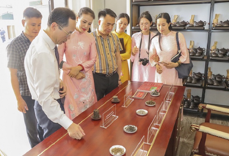 Tại đây, các thành viên trong đoàn đã được Bác sĩ Nguyễn Công Hân – Chủ tịch Hội đồng Quản trị Tập đoàn HYH Việt Nam, Nhà sáng lập thương hiệu DragonTea Suối Giàng giới thiệu công nghệ, mô hình sản xuất trà sạch bằng công nghệ cao kết hợp phương pháp truyền thống