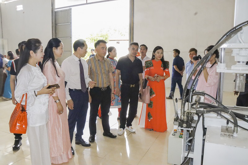 Tiếp nối chương trình, đoàn công tác cũng đã thăm mô hình sản xuất chè sạch ứng dụng công nghệ cao tại Công ty DragonTea (Suối Giàng, xã Văn Chấn)