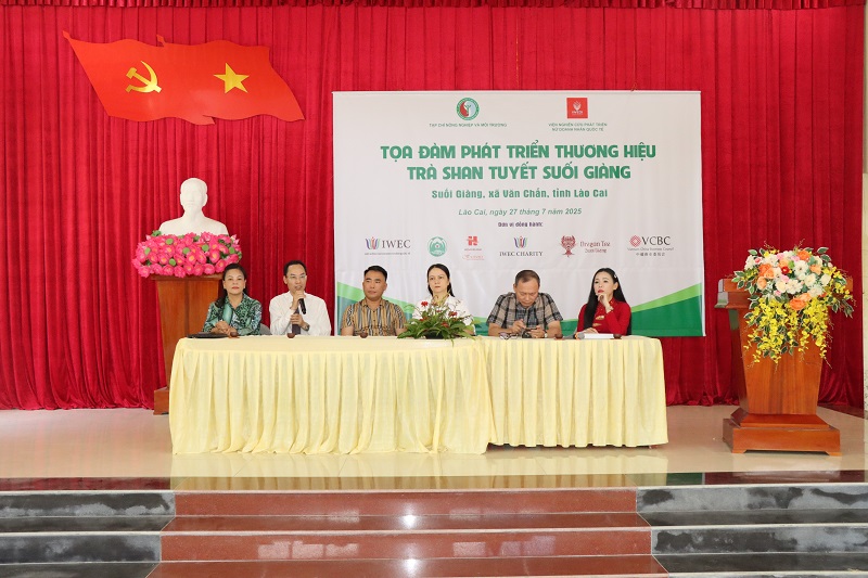 Cũng nằm trong chuỗi chương trình tại Lào Cai, Đoàn công tác của Tạp chí Nông nghiệp và Môi trường cùng IWEDI đã có chuyến thăm và khảo sát mô hình sản xuất chè sạch ứng dụng công nghệ cao của Công ty Cổ phần DragonTea Suối Giàng, tại xã Văn Chấn; đồng thời, tổ chức tọa đàm với chủ đề “Phát triển thương hiệu Trà Shan Tuyết Suối Giàng” thu hút sự quan tâm của nhiều lãnh đạo, chuyên gia, doanh nhân và người làm chè tâm huyết, nhằm thảo luận các định hướng phát triển bền vững cho sản phẩm trà Shan Tuyết - “báu vật xanh” của vùng cao Suối Giàng.