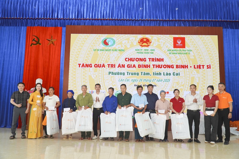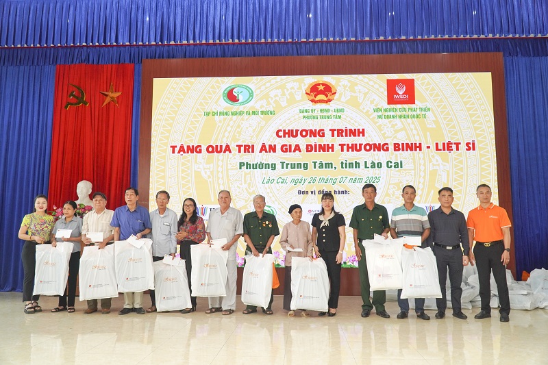 Theo đó, trong 3 ngày 25, 26 và 27/7, Tạp chí Nông nghiệp và Môi trường và Viện Nghiên cứu Phát triển Nữ Doanh nhân Quốc tế (IWEDI) đã tổ chức chuỗi chương trình ý nghĩa tại tỉnh Lào Cai như: Chương trình “Chùa Xanh” tại Chùa Trúc Lâm Thiên Phú; Chương trình “Tặng quà tri ân gia đình thương binh – liệt sĩ” tại phường Trung Tâm và xã Văn Chấn”; đến thăm hỏi, động viên và tặng quà cho Mẹ Việt Nam Anh hùng Nguyễn Thị Hòa (xã Thượng Bằng La); bà Cao Thị Viêm là vợ của Liệt sĩ Nguyễn Văn Phối; ông Lưu Thanh Liêm là thương bịnh hạng 4/4 với tỷ lệ thương tật 21% (phường Trung Tâm); Dâng hương, dâng hoa thành kính tưởng nhớ Chủ tịch Hồ Chí Minh và dâng hương các Anh hùng Liệt sĩ đã hy sinh vì độc lập, tự do của dân tộc tại Khu di tích lịch sử Căng và Đồn Nghĩa Lộ.