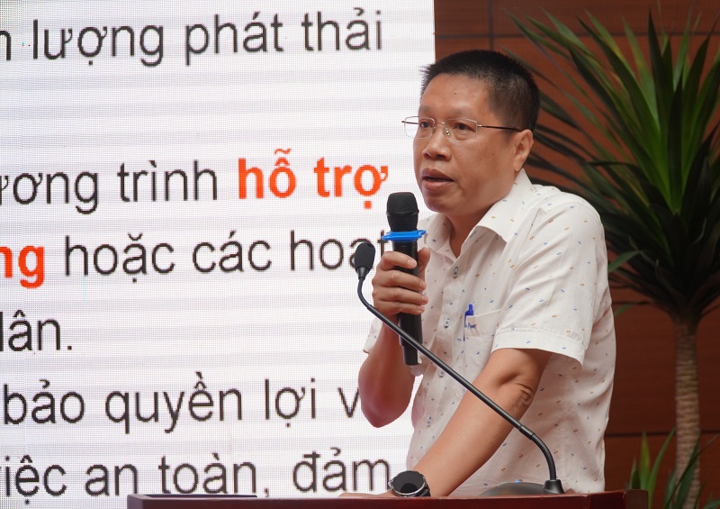 TS. Vũ Văn Doanh, Phó trưởng khoa Môi trường. Trường Đại học Tài nguyên và Môi trường Hà Nội trình bày tham luận “Tiếng nói môi trường: Vai trò xã hội và giám sát trong phát triển kinh tế tuần hoàn”