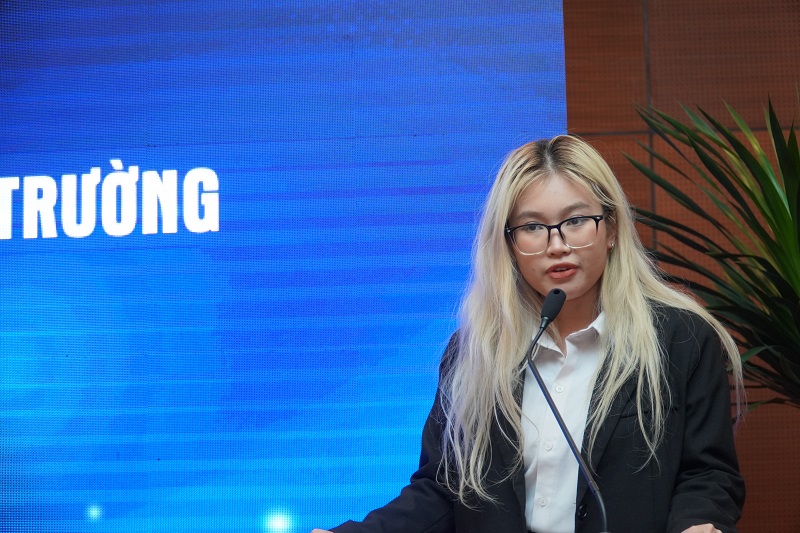 Bà Đỗ Thủy Tiên, Phó Giám đốc Công ty Asahi Travel Việt Nam trình bày tham luận “Ứng dụng mô hình kinh tế tuần hoàn ở Nhật Bản – Bài học cho Việt Nam"