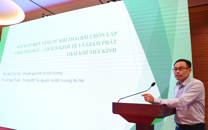 Cũng tại hội thảo, TS. Lê Ngọc Thuấn, Viện nghiên cứu Tài nguyên và Biến đổi khí hậu, Trường Đại học Tài nguyên và Môi trường Hà Nội đã trình bày tham luận “Sản xuất điện năng từ khí thải bãi chôn lấp chất thải rắn - lợi ích kinh tế và giảm phát thải khí nhà kính”. Theo đó, quản lý chất thải rắn sinh hoạt (CTRSH) là một trong những vấn đề ưu tiên trong công tác quản lý môi trường ở nước ta, đặc biệt là trong bối cảnh dân số gia tăng và các hoạt động kinh tế ngày càng phát triển. Hiện nay, công tác quản lý CTRSH được thực hiện theo hướng chủ yếu đó là chú trọng đến xử lý cuối cùng, tập trung vào thu gom, vận chuyển, xử lý và chú trọng đến việc tái chế chất thải, tập trung vào việc phân loại chất thải tại nguồn, tái sử dụng, tái chế, đốt hoặc chôn lấp. Với hướng quản lý như trên dự kiến khối lượng chất thải mang đi chôn lấp sẽ hạn chế tối đa, thay vào đó là các giải pháp tái chế, tái sử dụng. Tuy nhiên trong giai đoạn trước, khối lượng CTRSH phát sinh được chôn lấp tại các bãi chôn lấp là rất lớn. Về mặt môi trường các bãi chôn lấp CTRSH là nguồn gây ô nhiễm tới môi trường nước, không khí, đất. Tuy nhiên, xét về mặt kinh tế nếu chúng ta biết tận dụng và thu hồi khí thải tại các bãi chôn lấp (LFG) có thể sẽ mang lại các giá trị kép đó là giá trị về kinh tế.