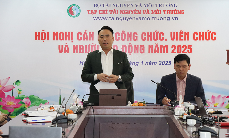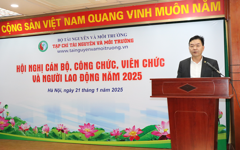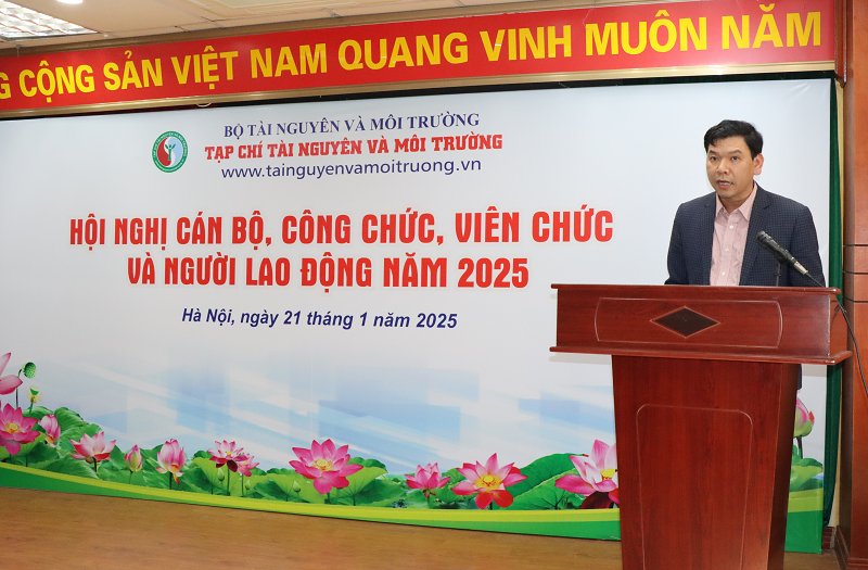 TS. Đào Xuân Hưng, Tổng Biên tập Tạp chí TN&MT phát biểu ghi nhận, biểu dương, đánh giá cao sự cố gắng của toàn thể viên chức, phóng viên, biên tập viên và người lao động Tạp chí trong công tác chuyên môn, nghiệp vụ năm 2024. Trong bối cảnh kinh tế báo chí gặp khó khăn, nguồn thu quảng cáo sụt giảm đáng kể, nhưng Tạp chí Tài nguyên và Môi trường vẫn đảm bảo các chế độ cho viên chức, người lao động Tạp chí