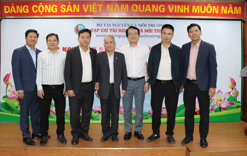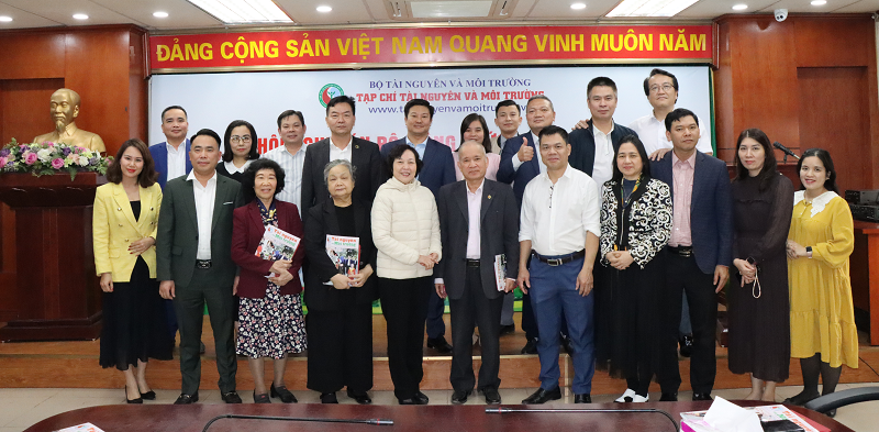 Ban Biên tập Tạp chí TN&MT, lãnh đạo các phòng chức năng, cán bộ, phóng viên, biên tập viên cùng nguyên Lãnh đạo tạp chí chụp ảnh lưu niệm