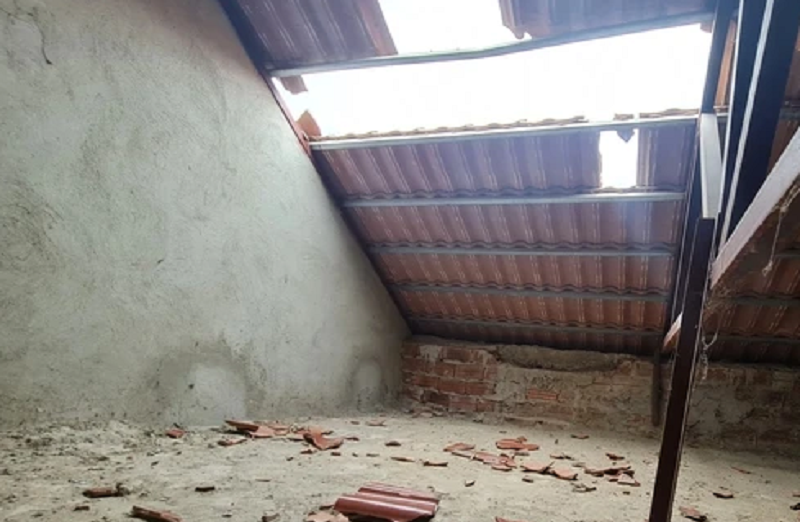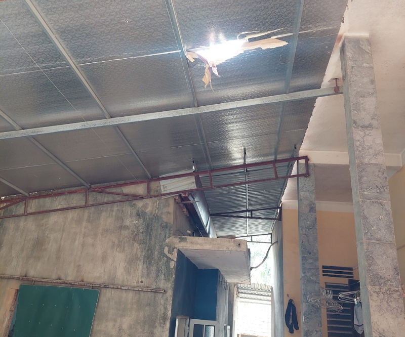 Đá văng làm hư hỏng mái tôn của các hộ dân thôn 9 (Ảnh: Người dân cung cấp)
