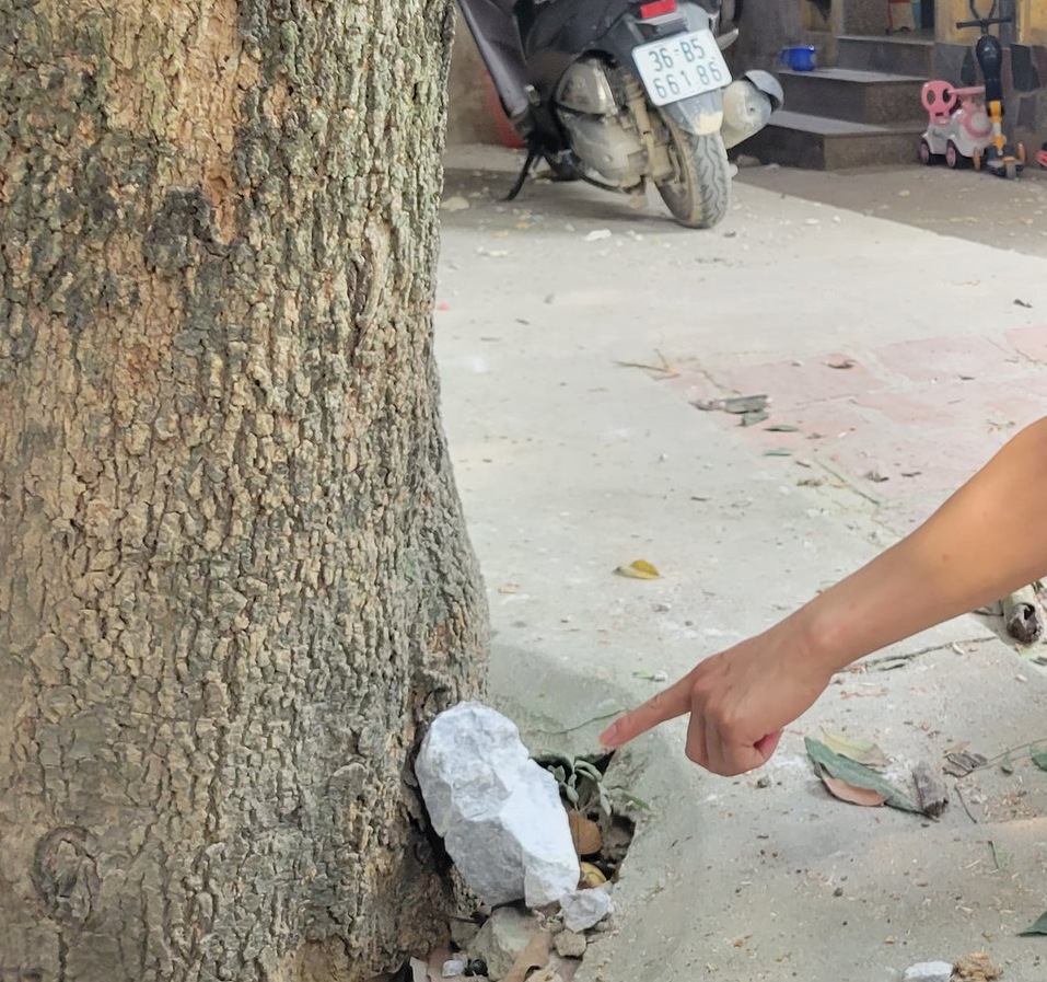 Đá văng nằm ngổn ngang khắp sân vườn, ngõ xóm của các hộ dân thôn 9 (Ảnh: Hoàng Anh)