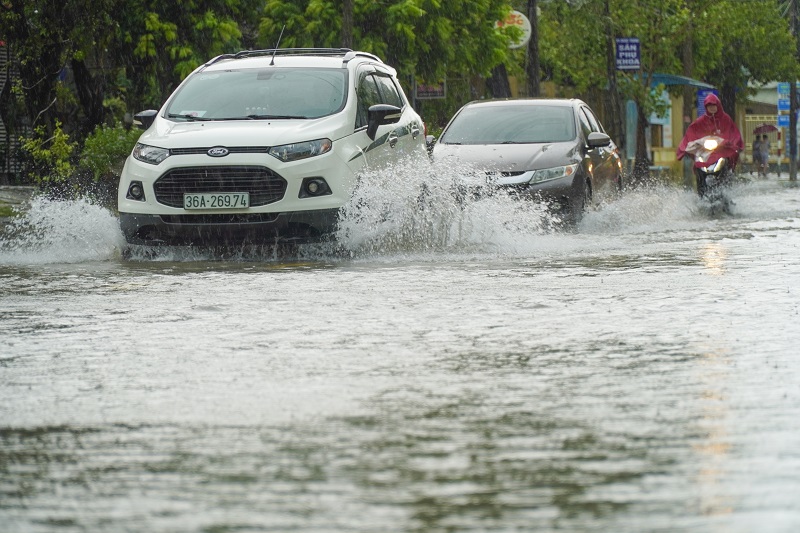 Do ảnh hưởng trực tiếp của bão số 5, từ rạng sáng nay trên địa bàn phường Hạc Thành, tỉnh Thanh Hóa đã xuất hiện mưa lớn kéo dài. Lượng mưa dồn dập khiến nhiều tuyến đường chính như Quang Trung, Lê Văn Hưu, Hải Thượng Lãn Ông bị ngập úng cục bộ, gây khó khăn cho việc đi lại và tiềm ẩn nguy cơ mất an toàn giao thông. Tại một số khu dân cư, nước mưa đổ về nhanh khiến hệ thống thoát nước bị quá tải, nhiều đoạn ngập sâu.