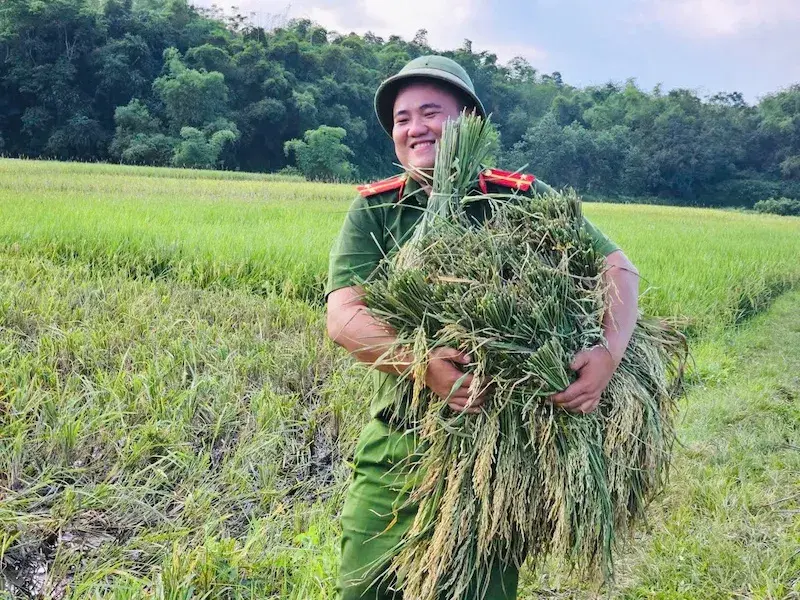 “Lực lượng công an xã có hạn, nhưng chúng tôi luôn sẵn sàng ra đồng giúp đỡ bà con thu hoạch lúa nhanh nhất có thể. Chúng tôi coi bà con, như gia đình, người thân của mình vậy, nên khi tham gia thu hoạch lúa với bà con rất vui”, Trung úy Hà Ngọc Lâm cho biết.