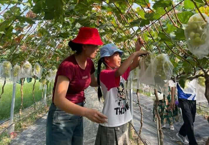 Năm 2021, vườn được mở rộng, bổ sung thêm hai giống nho mới đó là nho sữa Hàn Quốc và nho Hắc Mỹ Nhân, nâng tổng diện tích lên 10.000m2. Lúc đầu thấy vườn nho của anh đẹp, nhiều người xin vào chụp ảnh check – in miễn phí. Nhưng “tiếng làng đồn xa”, lượng khách đến này một đông, nên vụ nho năm 2022 vợ chồng anh quyết định kết hợp làm du lịch trải nghiệm vườn nho. Ngay sau khi “mở cửa” dich vụ, hàng chục đoàn khách, các trường mầm non, tiểu học trên địa bàn và những địa bàn lân cận đã cho học sinh đến trải nghiệm, chụp ảnh tại vườn nho của gia đình anh.