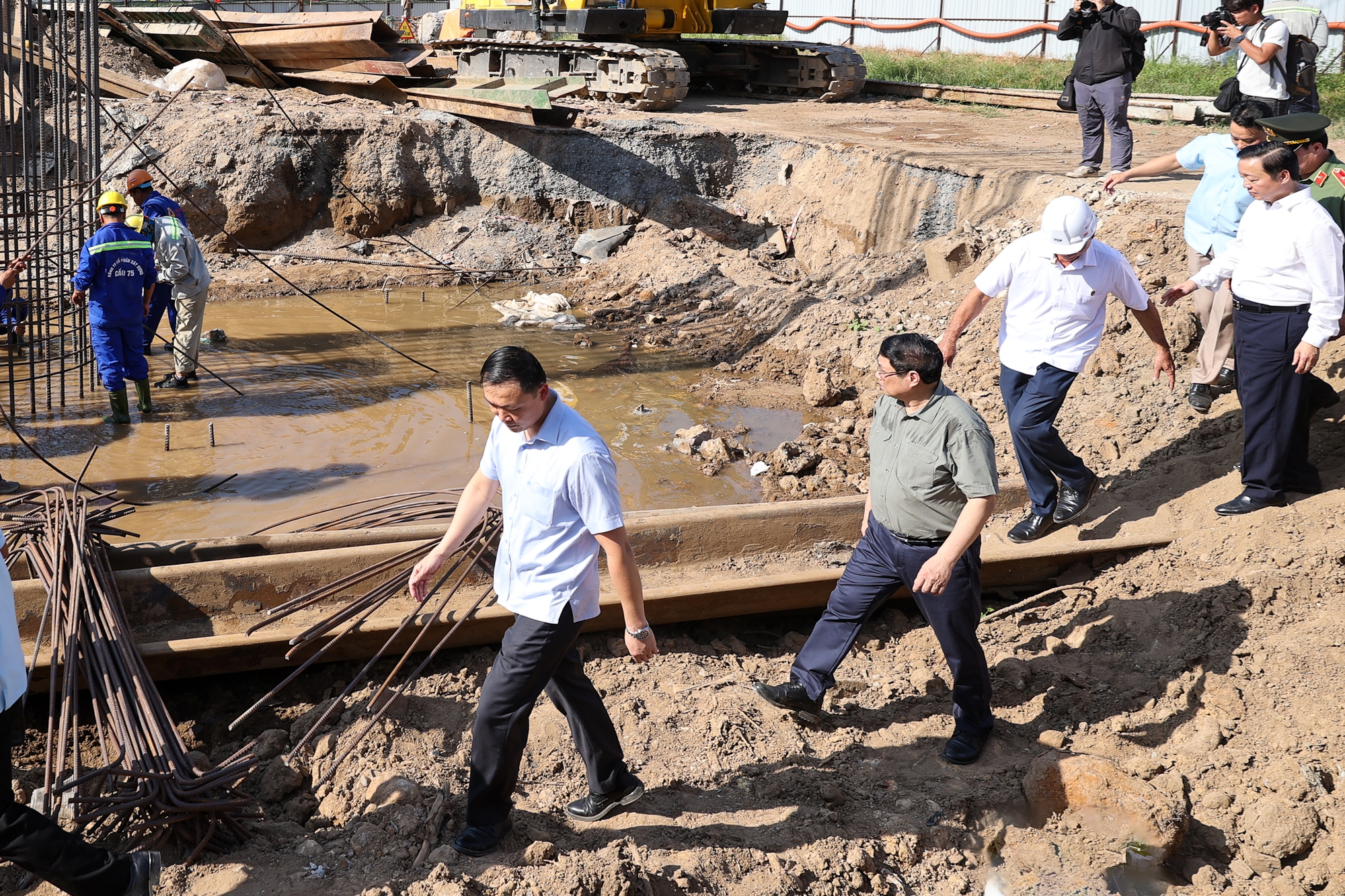 Cùng đi với Thủ tướng có các đồng chí Ủy viên Trung ương Đảng: Phó Thủ tướng Chính phủ Trần Hồng Hà, Bộ trưởng, Chủ nhiệm Văn phòng Chính phủ Trần Văn Sơn, Bộ trưởng Bộ Giao thông vận tải Nguyễn Văn Thắng, Bộ trưởng Bộ Xây dựng Nguyễn Thanh Nghị, Trung tướng Lê Quốc Hùng, Thứ trưởng Bộ Công an; lãnh đạo các bộ, ngành, cơ quan Trung ương.
