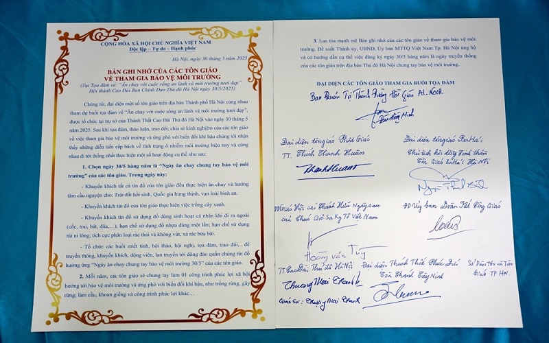 Đại diện các tôn giáo ký kết Biên bản ghi nhớ về chung tay bảo vệ môi trường