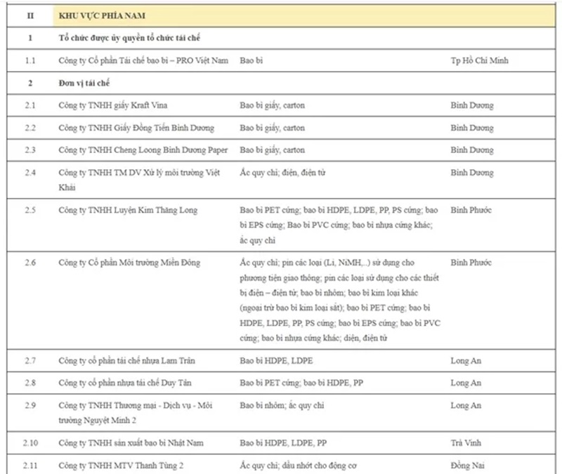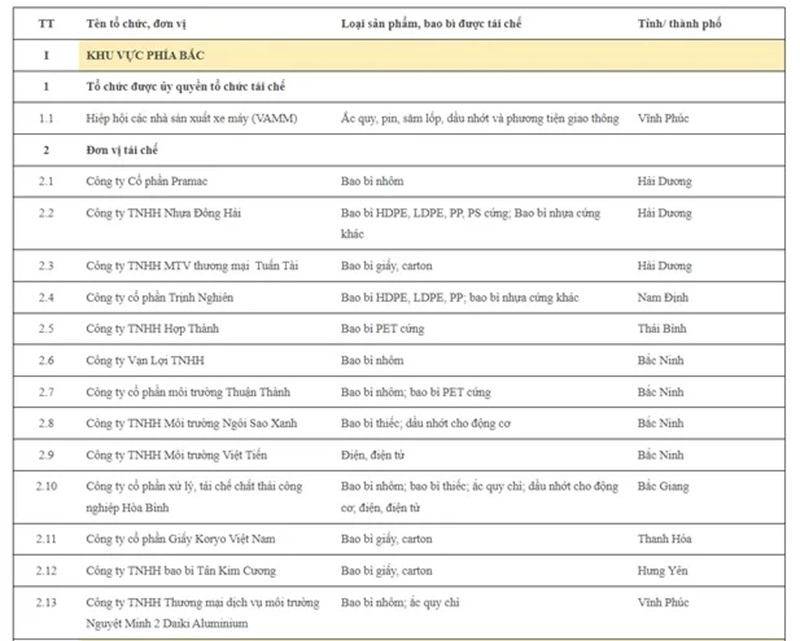 Danh sách 24 công ty tái chế do văn phòng EPR Quốc gia công bố đầu năm 2024