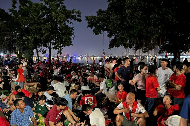 Hơn cả sự háo hức chờ đón một sự kiện trọng đại, người dân còn xem đây là dịp để thể hiện niềm tự hào dân tộc. Nhiều người mang theo thức ăn, nước uống, cùng nhau trò chuyện, chia sẻ cảm xúc. Những bài hát cách mạng, những câu chuyện về lịch sử hào hùng của dân tộc được cất lên giữa lòng Hà Nội, nơi hội tụ tinh hoa và ký ức thiêng liêng của đất nước.