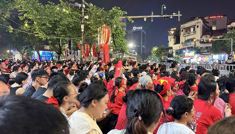 Dù trời đôi lúc đổ mưa to, nhưng từng dòng người vẫn kiên nhẫn ngồi lại, mắt hướng về khu vực diễn ra lễ diễu binh, diễu hành. Những chiếc áo đỏ sao vàng, lá cờ Tổ quốc, ánh đèn điện thoại… đã tạo nên một không gian lung linh, ấm áp tình yêu nước và tinh thần đoàn kết.