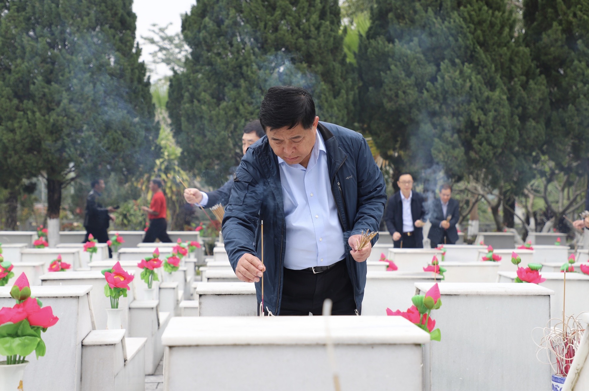 Bộ trưởng Nguyễn Chí Dũng từng là người lính Vị Xuyên trong cuộc chiến đấu bảo vệ biên giới phía Bắc vô cùng ác liệt cách đây 40 năm, thắp nén hương tưởng nhớ đồng đội