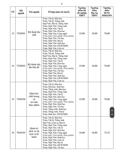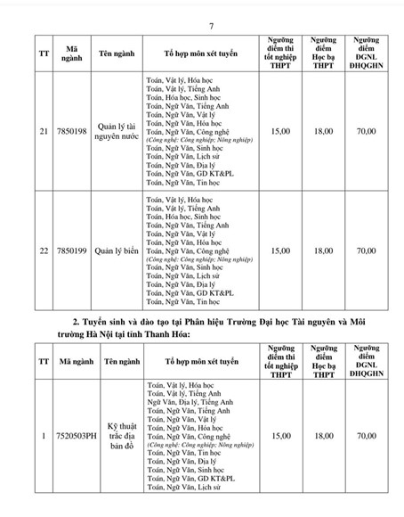 Thông báo ngưỡng đảm bảo chất lượng đầu vào và quy tắc quy đổi tương đương giữa các phương thức tuyển sinh đại học chính quy năm 2025 của Trường Đại học Tài nguyên và Môi trường Hà Nội.