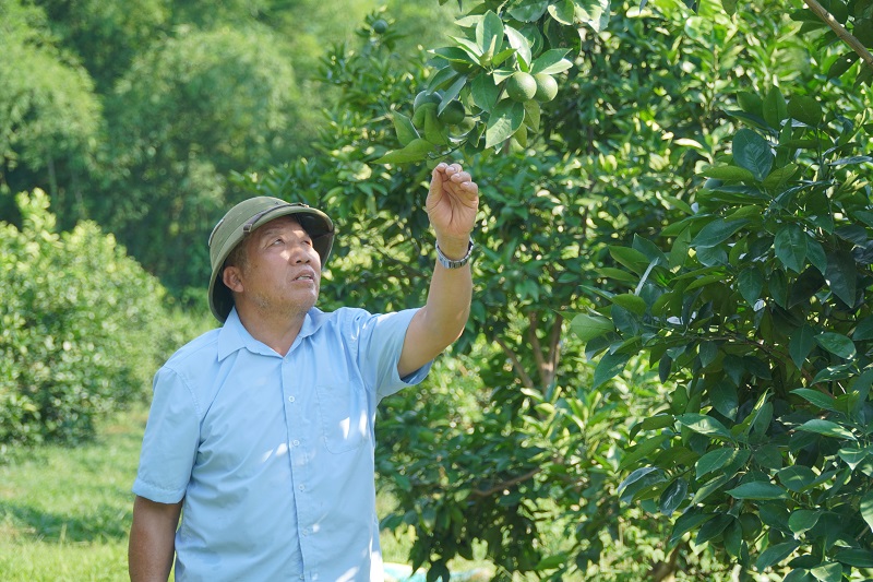 Ông Đinh Văn Bê, người tiên phong tích tụ đất đai và chuyển đổi cây trồng cam tại thôn Phâng Khánh, xã Cẩm Thạch