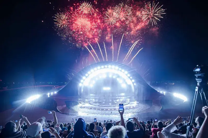 Kết thúc buổi tối là show đa phương tiện Kiss of the Sea với sân khấu lập kỷ lục Guinness nhà hát ngoài trời sở hữu màn chiếu nước và sức chứa lớn nhất thế giới. Điều làm nên sức hút của show chính là cách kể chuyện được nâng tầm bằng những hiệu ứng đặc biệt: sự kết hợp của lửa, nước, tia laser, âm nhạc và cao trào nhất là những màn pháo hoa rực rỡ nở bừng trên bầu trời đêm. Tất cả tạo nên một “bữa tiệc thị giác” đúng nghĩa, nơi từng khung cảnh, từng chuyển động đều khiến khán giả phải trầm trồ. “Thực sự mãn nhãn”, Sarah nhấn mạnh.