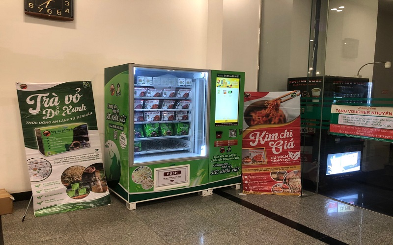 Máy bán hàng tự động với các sản phẩm sạch, an toàn - mang trà vỏ đỗ xanh, kim chi giá và thực phẩm tiện lợi đến gần hơn với người tiêu dùng hiện đại.