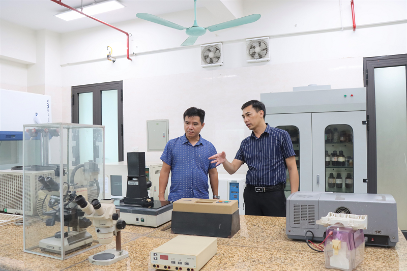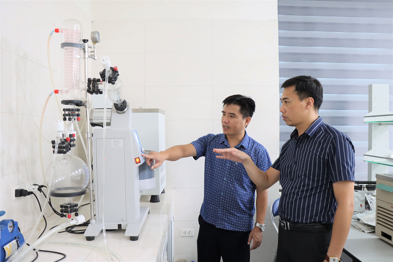 TS. Nguyễn Văn Nguyện giới thiệu các thiết bị tham gia nghiên cứu công nghệ xử lý nhanh chất thải chăn nuôi tại phòng thí nghiệm
