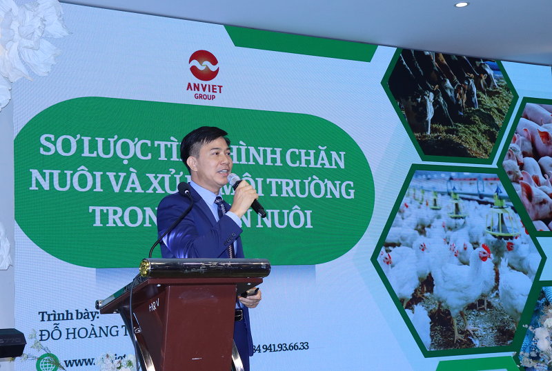Ông Đỗ Hoàng Thạch, Tổng Giám đốc An Việt Group trình bày, hiện nay có thể nói Việt Nam chúng ta đang trên đà phát triển về chăn nuôi và chăn nuôi là một trong những ngành kinh tế rất quan trọng. Trong những năm qua trên đà phát triển của ngành chăn nuôi đã tăng trưởng vượt bậc. Do đó, ngành chăn nuôi đang là sinh kế cho khoảng trên dưới 10 triệu người dân Việt Nam. Có thể nói, trên thế giới thì Việt Nam của chúng ta cũng là tốp đầu trong vấn đề phát triển chăn nuôi, ví dụ, nói về thủy cầm thì Việt Nam đang đứng tốp thứ hai thế giới với tổng quy mô như vậy những bức tranh về quy mô trong chăn nuôi của chúng ta lại rất nhỏ và chủ yếu nó lại đang nằm ở các khu dân cư.