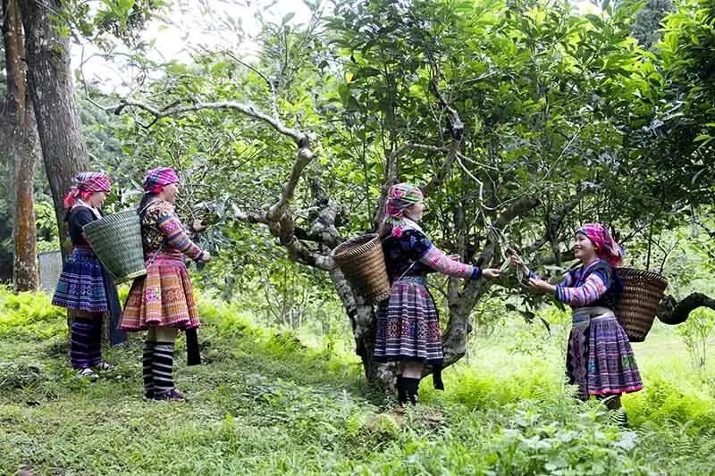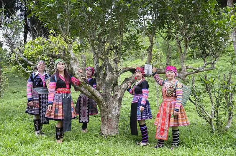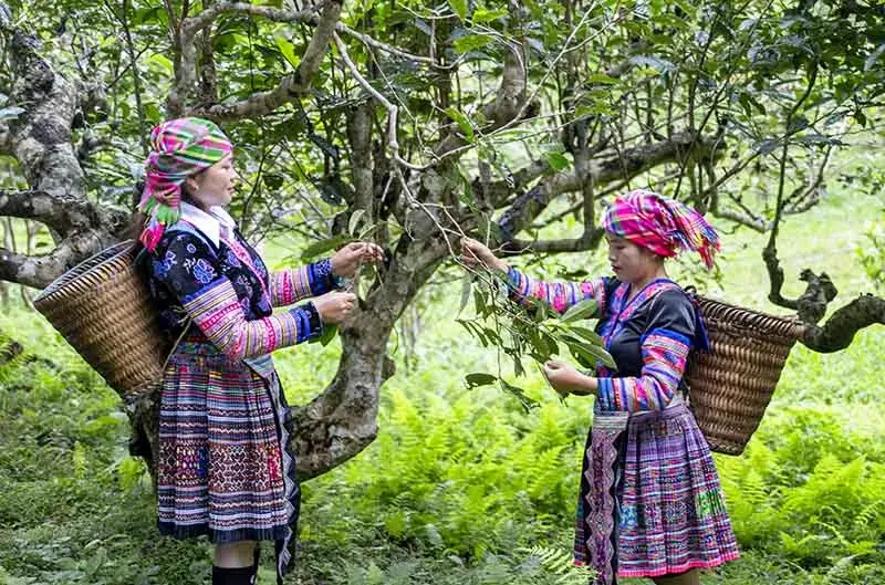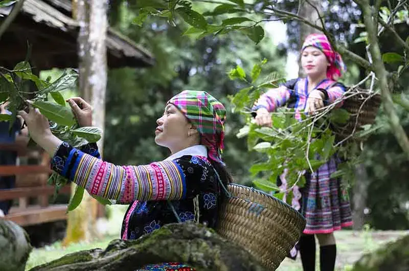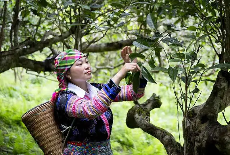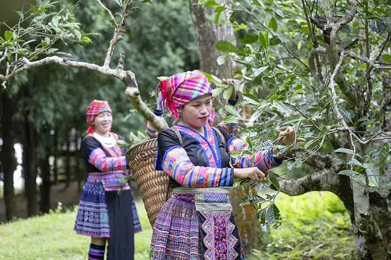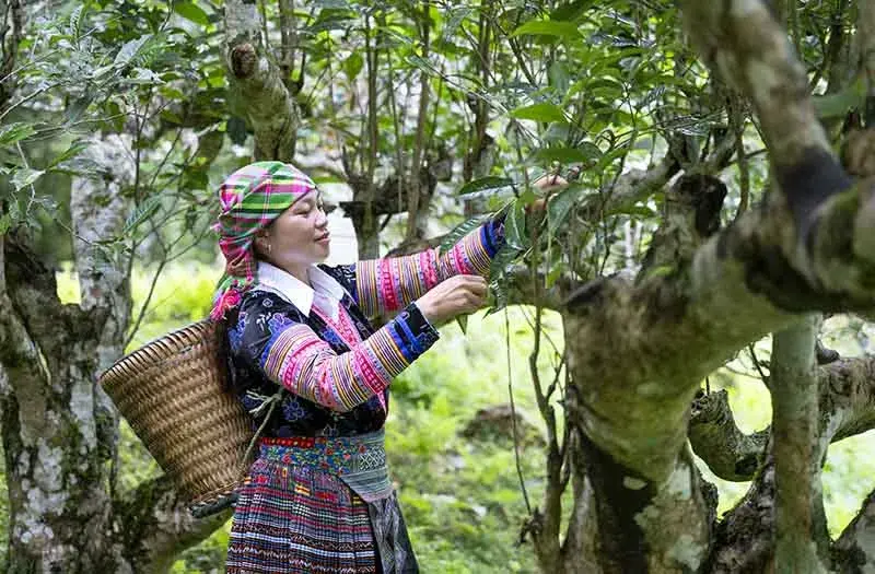 Người phụ nữ Mông trong trang phục truyền thống rực rỡ, khéo léo hái chè Shan tuyết giữa những gốc chè cổ thụ hàng trăm năm tuổi ở Suối GiàngTrong trang phục truyền thống rực rỡ, người phụ nữ Mông cần mẫn hái những búp chè Shan tuyết non giữa vườn chè cổ thụ Suối GiàngMỗi búp chè là kết tinh của đất trời và bàn tay khéo léo, gắn bó của bao thế hệ người vùng cao Suối GiàngMột ly trà Shan tuyết trong vắt, mang sắc vàng nhẹ, thơm dịu, mỗi ngụm đều là sự kết tinh của đất trời và bàn tay con người
