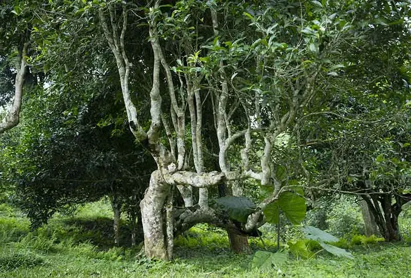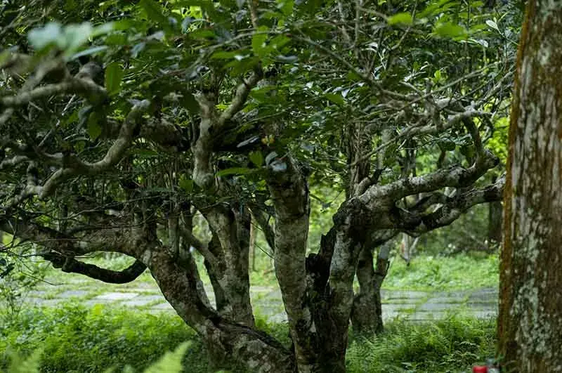 Cây chè Shan tuyết cổ thụ với thân to, phủ đầy rêu xanh, là biểu tượng của sức sống mãnh liệt nơi vùng cao Suối GiàngCây chè Shan tuyết cổ thụ được gọi là “Cây chè Tổ” tại Suối Giàng, được cho là có tuổi đời hàng trăm năm